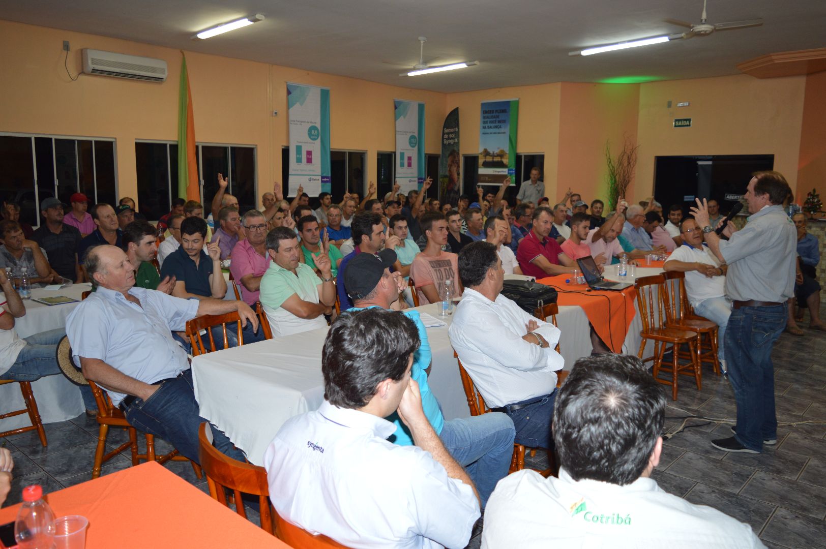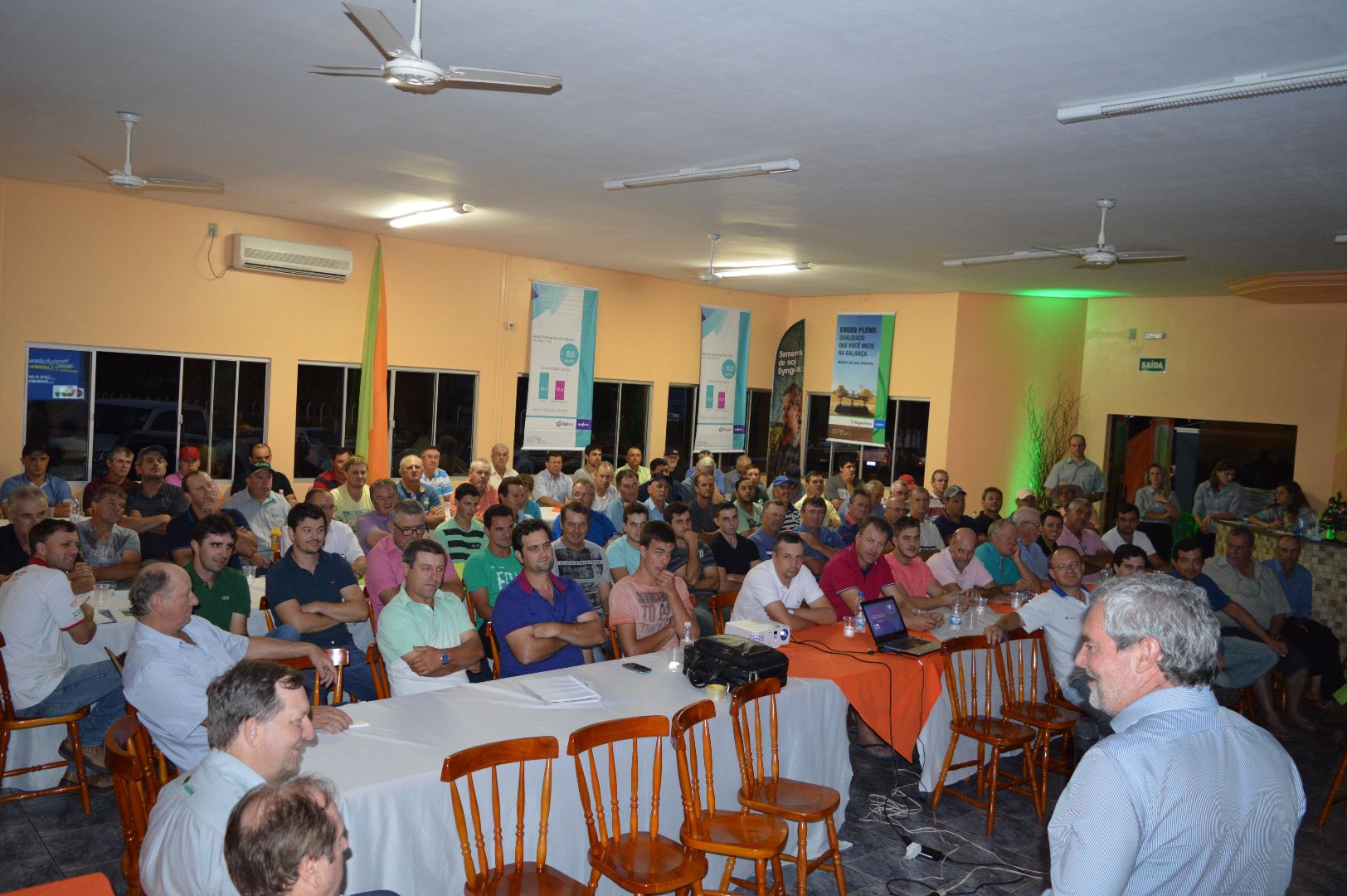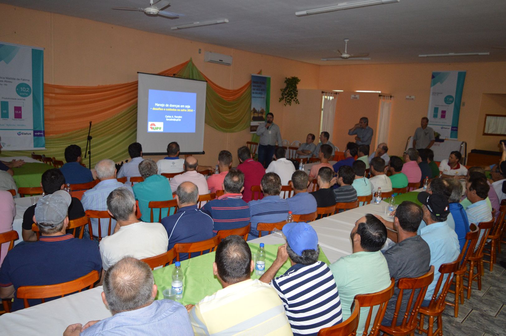 Nesta terça-feira, 15, o evento reuniu mais de 100 produtores em Fortaleza dos valos. Na ocasião, técnicos da Syngenta apresentaram informações sobre o manejo estratégico de pragas, nutrição especial da soja e a importância do tratamento eficaz das sementes. Após o workshop, os produtores assistiram à palestra “Manejo Fitossanitário da Cultura da Soja”, com o Engenheiro Agrônomo, Dr. Carlos Alberto Forcelini, professor e pesquisador da Universidade de Passo Fundo. Forcelini chamou a atenção dos participantes para o aparecimento precoce de ferrugem asiática e a importância de não atrasar a primeira aplicação.