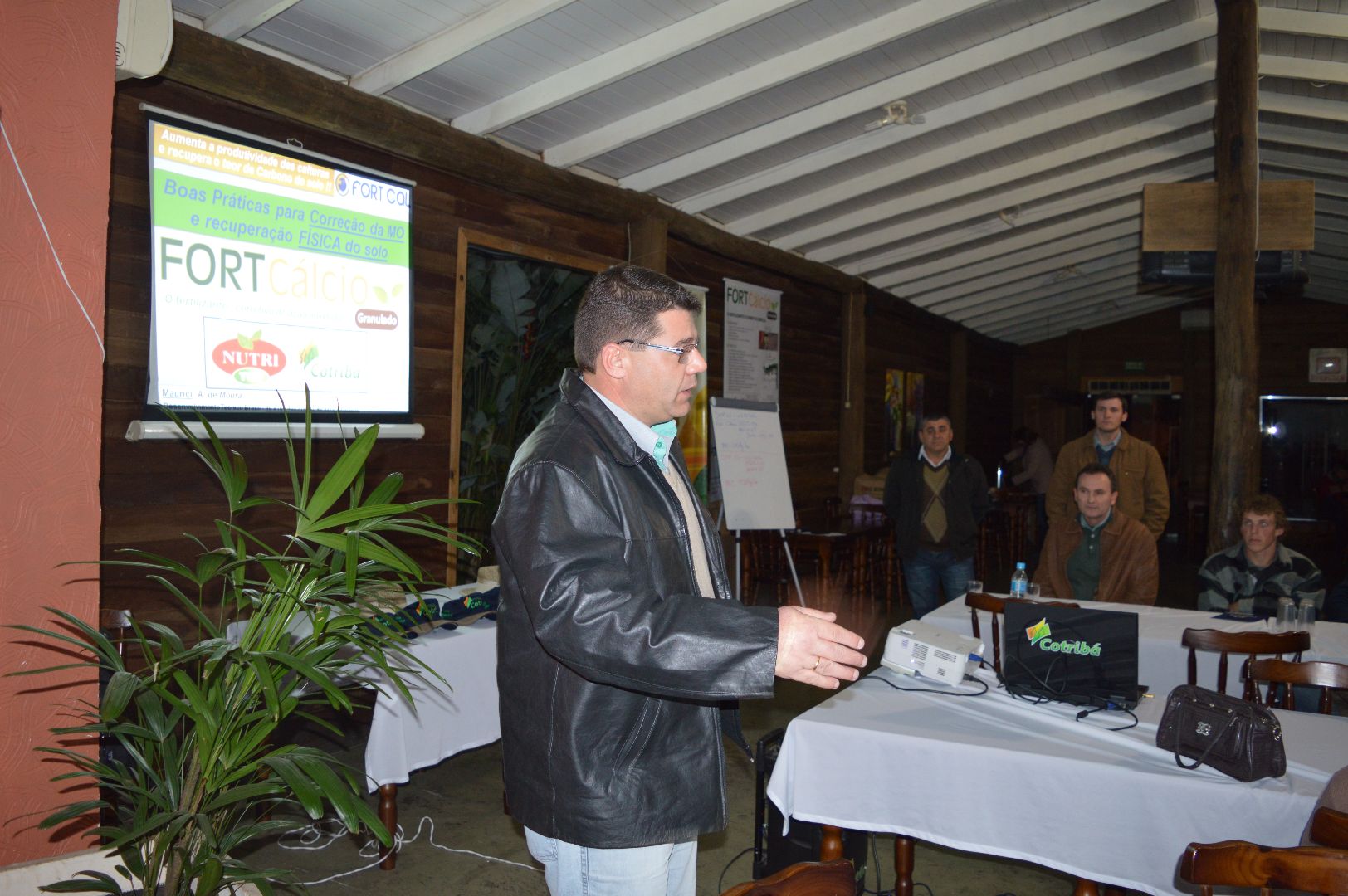 Dias 13 e 14 de junho, em Candelária e Cachoeira do Sul, respectivamente, a Cotribá, em parceria com a Fort Cal, realizou duas palestras técnicas sobre conservação do solo e na oportunidade apresentaram as inúmeras vantagens da utilização do produto Fortcálcio. A primeira palestra foi ministrada pelo engenheiro agrônomo Maurici A. de Moura, de Pato Branco, PR. Ele apresentou aos produtores a pesquisa sobre os vários solos brasileiros. Conforme o pesquisador, os solos são na sua maioria ácidos, característica que favorece o aparecimento de elementos tóxicos para as plantas. O FortCálcio, além de corrigir a acidez do solo diminui os efeitos tóxicos do alumínio, manganês e ferro. Ao fornecer cálcio, aumenta a disponibilidade de nitrogênio, fósforo, potássio, enxofre e micronutrientes.