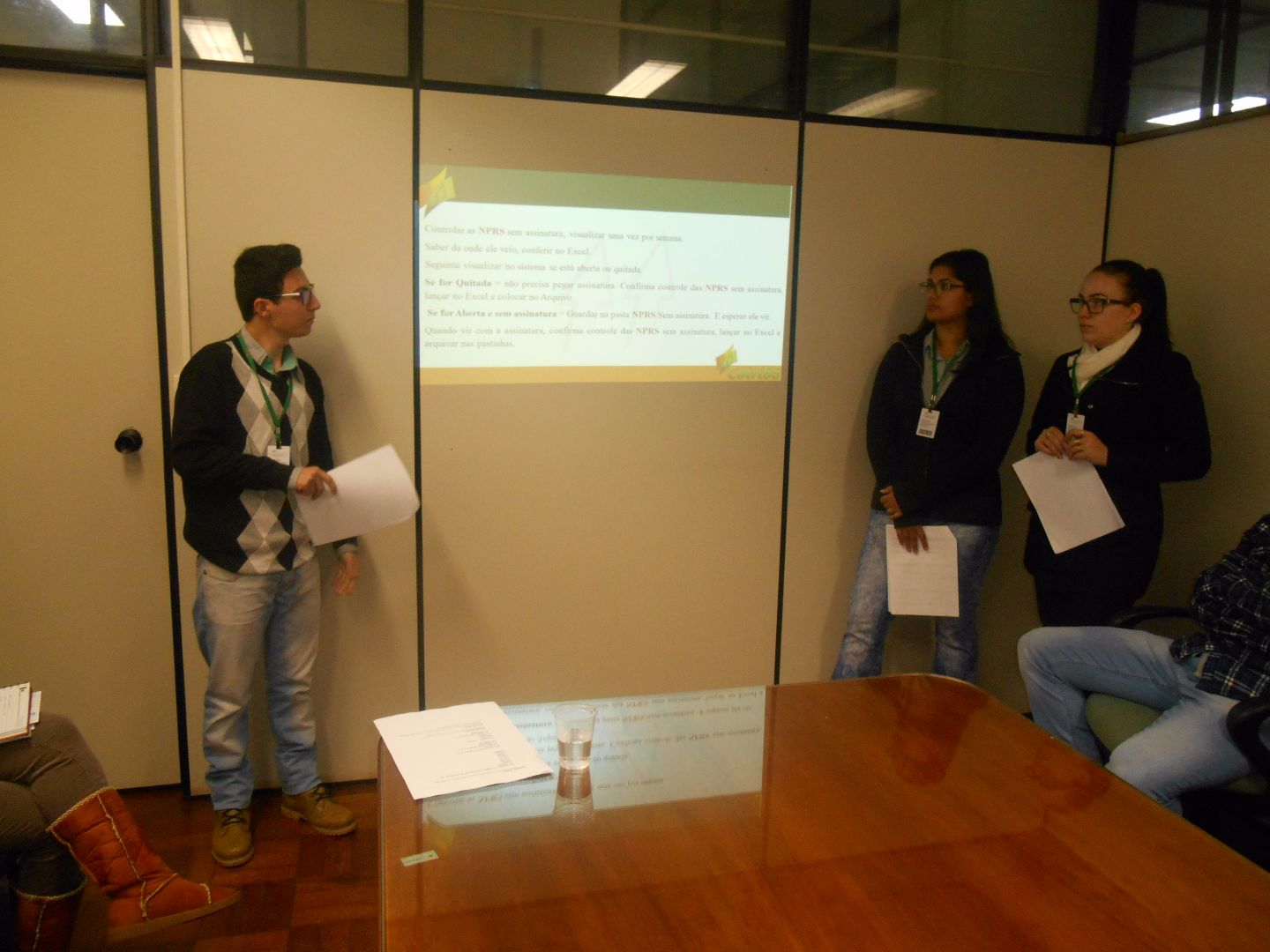 Já nesta sexta-feira, 17, a equipe da conferência de documentos da conta movimento e títulos de crédito, Bruna Greff, Richard Shimidt e Marisa Braatz, dividirem seus conhecimentos e tarefas com os colegas.