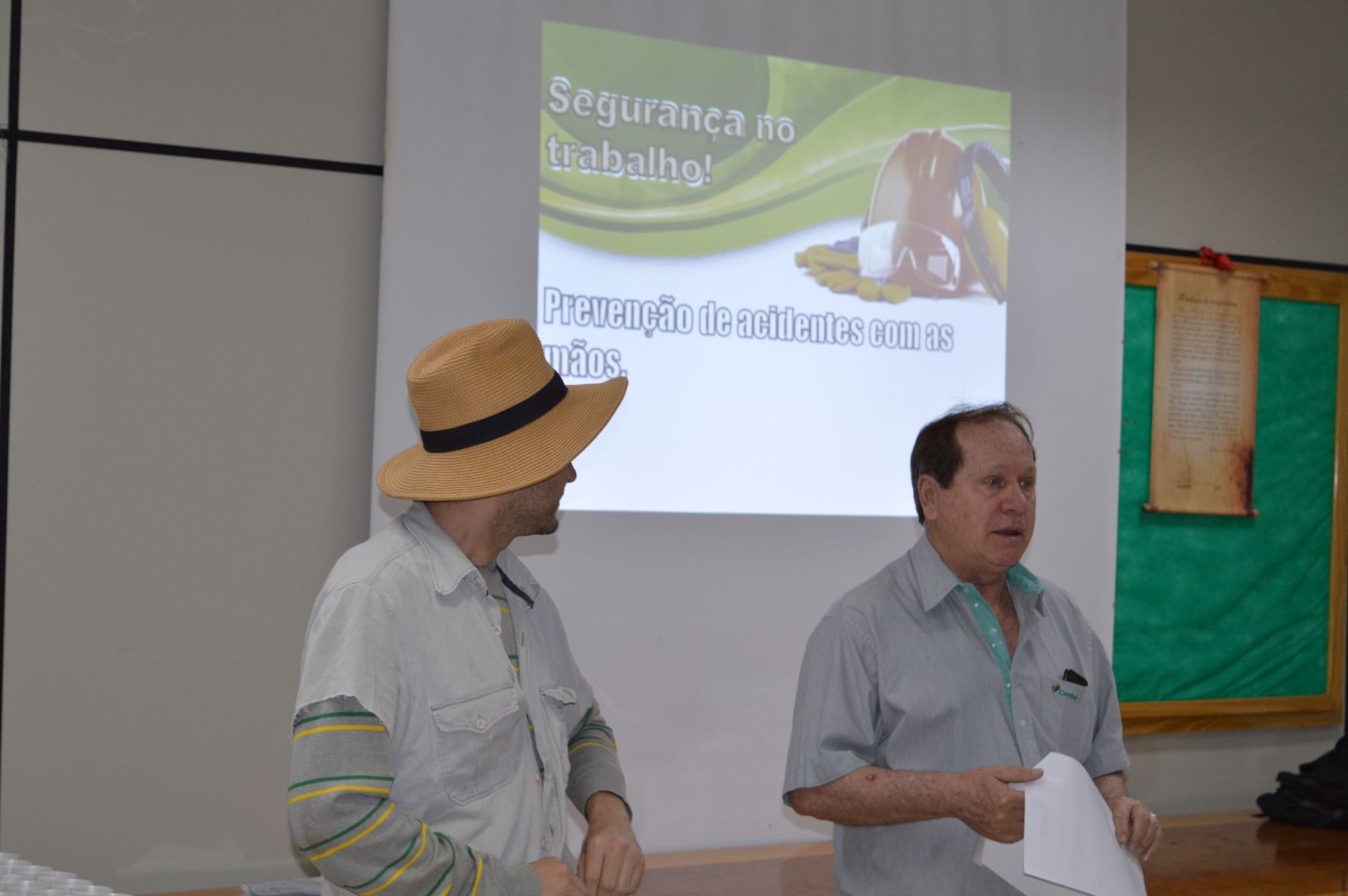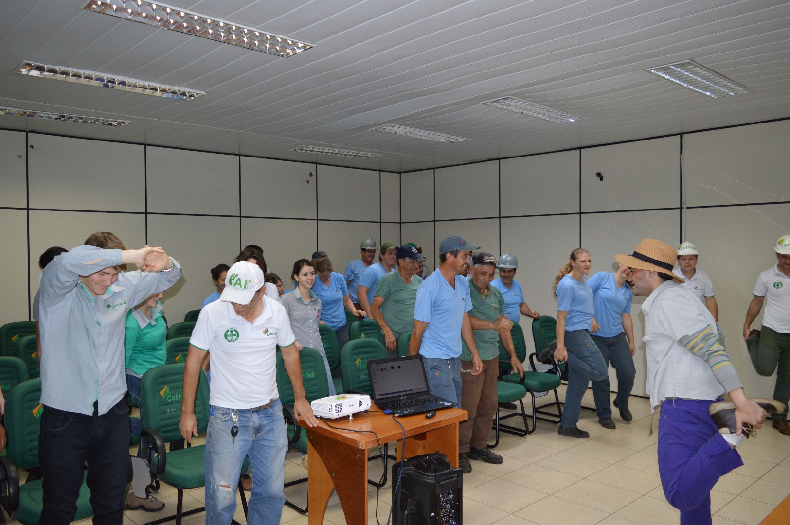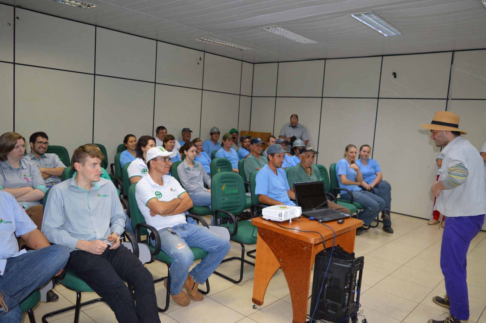 Prevenção, humor e arte resumem a manhã dos colaboradores da Unidade Sede. Os funcionários dos armazéns e da fábrica de rações foram divididos em duas turmas e assistiram à palestra "Prevenção de Acidentes", ministrada pela Companhia da SIPAT, de São Paulo. Prevenção, atenção, uso de EPI's, conhecimento e responsabilidade na execução das tarefas diárias foram abordadas de maneira descontraída por um caipira muito simpático.