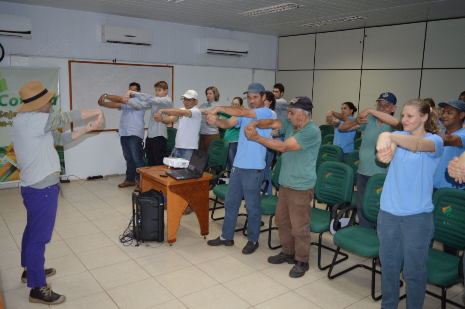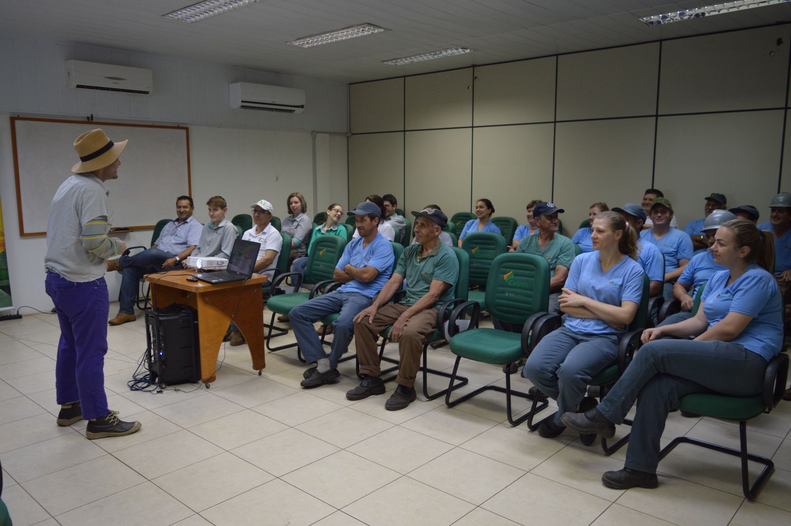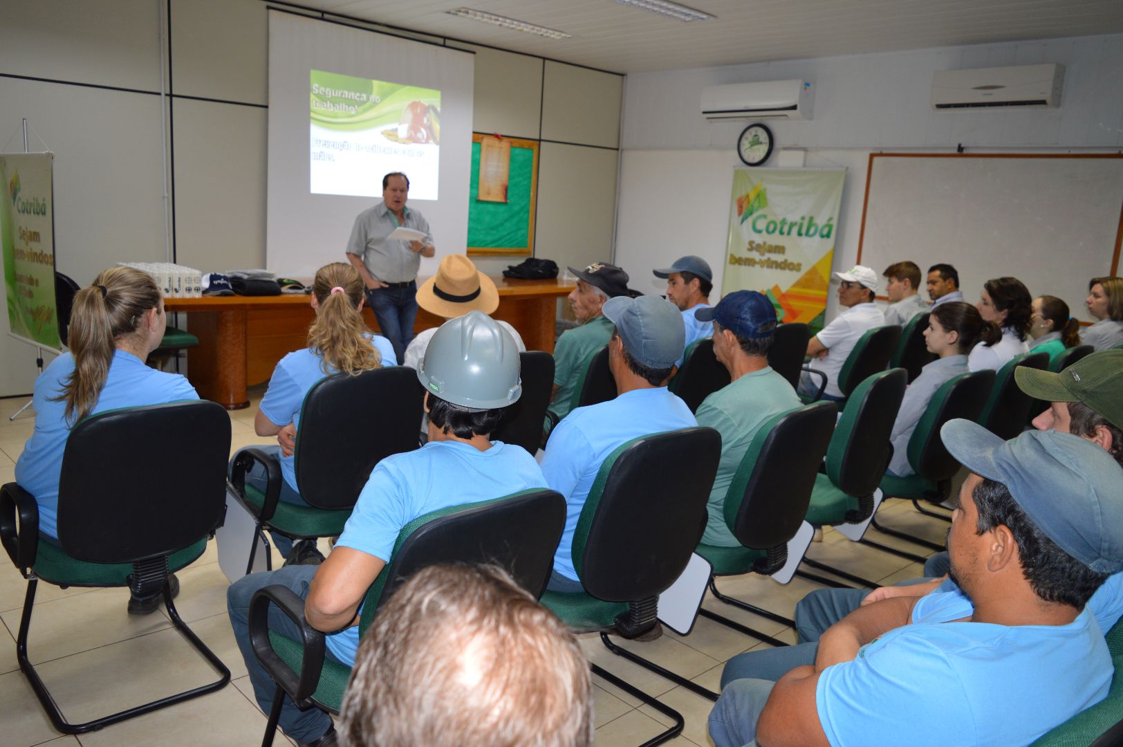 Prevenção, humor e arte resumem a manhã dos colaboradores da Unidade Sede. Os funcionários dos armazéns e da fábrica de rações foram divididos em duas turmas e assistiram à palestra "Prevenção de Acidentes", ministrada pela Companhia da SIPAT, de São Paulo. Prevenção, atenção, uso de EPI's, conhecimento e responsabilidade na execução das tarefas diárias foram abordadas de maneira descontraída por um caipira muito simpático.