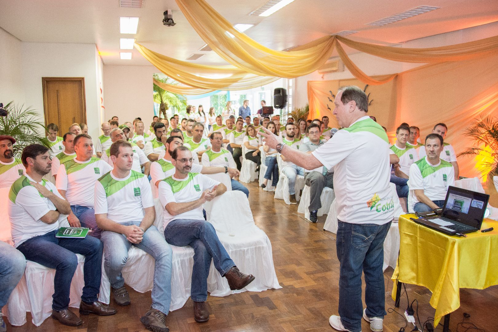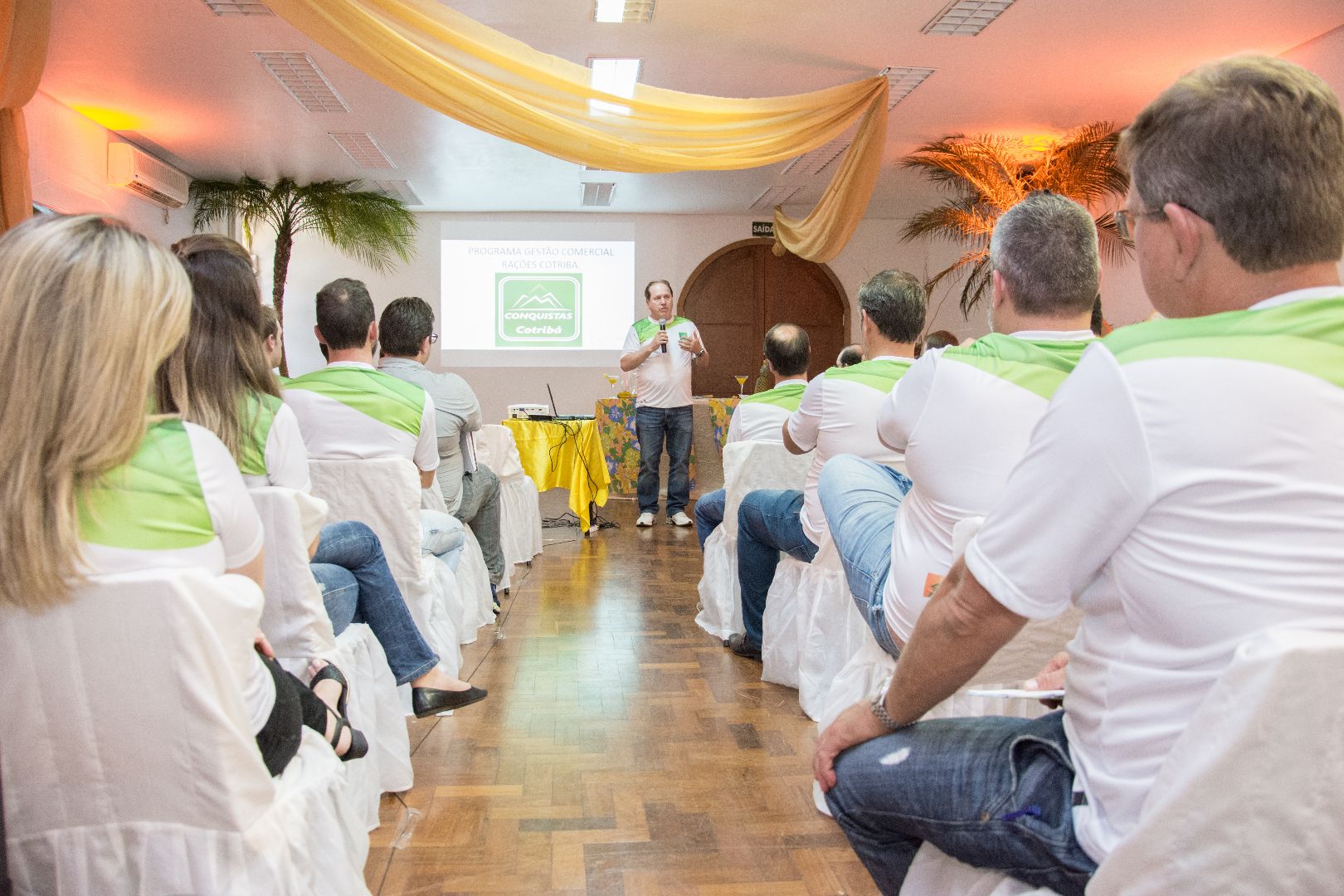 A primeira medida para elevar o patamar competitivo, a eficiência operacional da equipe e, consequentemente, aumentar a fatia de mercado foi o desenvolvimento de um programa de alta performance. Denominado Conquistas Cotribá, o programa foi lançado na tarde desta terça-feira, 07, na Asfuca, para coordenadores de unidades, vendedores internos (balconistas), vendedores externos, assistentes técnicos comerciais e força de venda externa (representantes comerciais). Também participaram do evento diretores e gerentes.