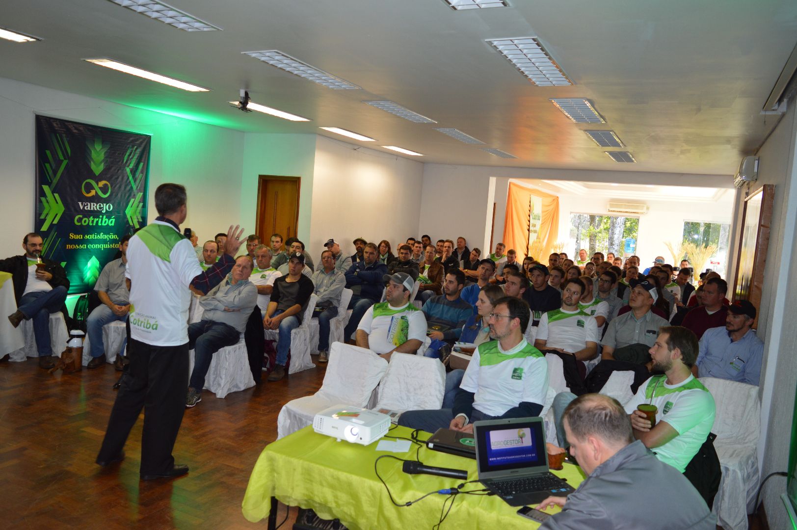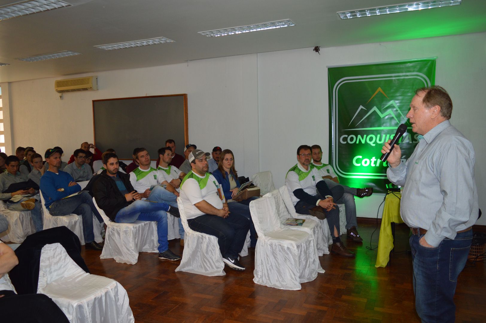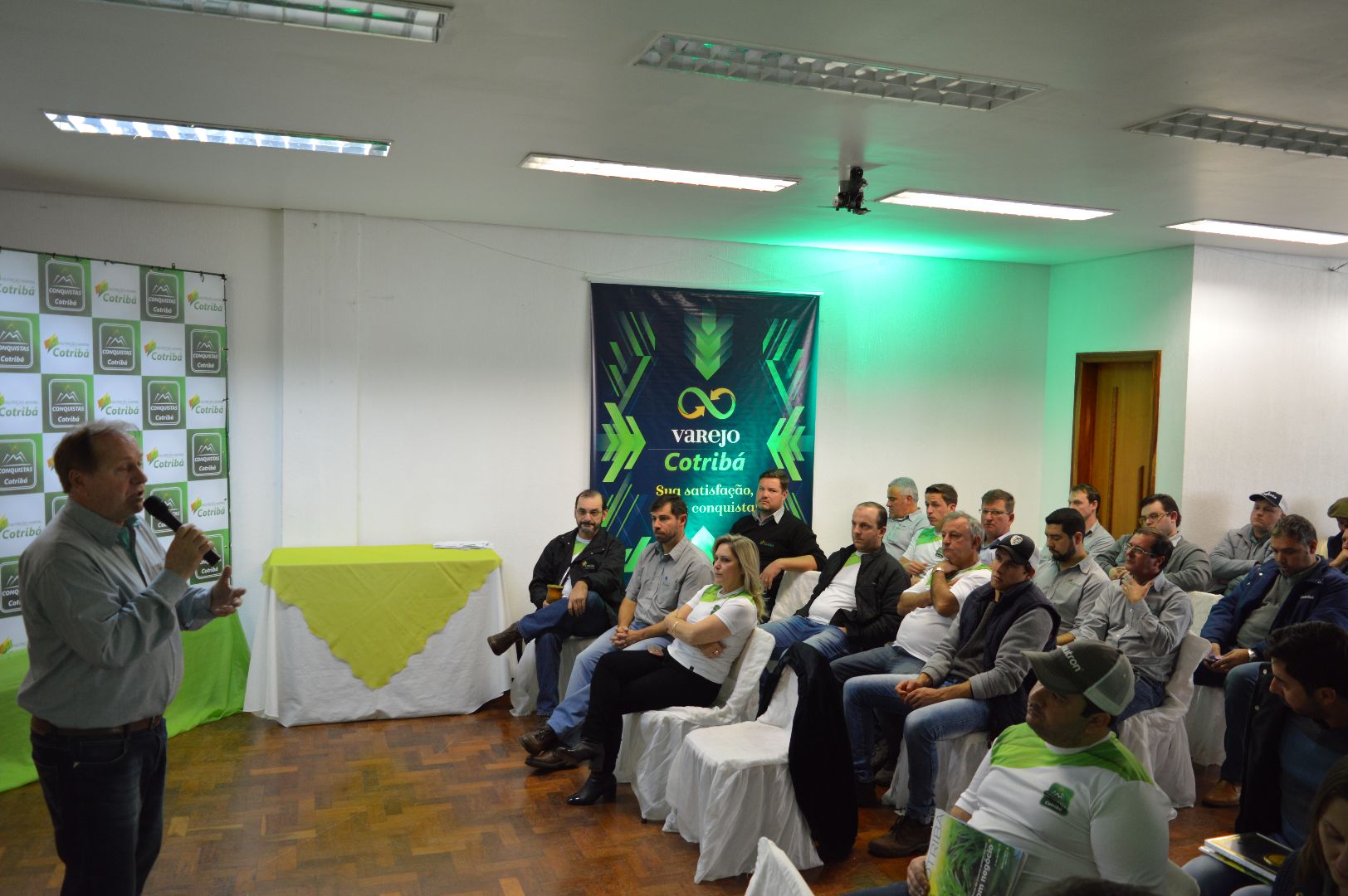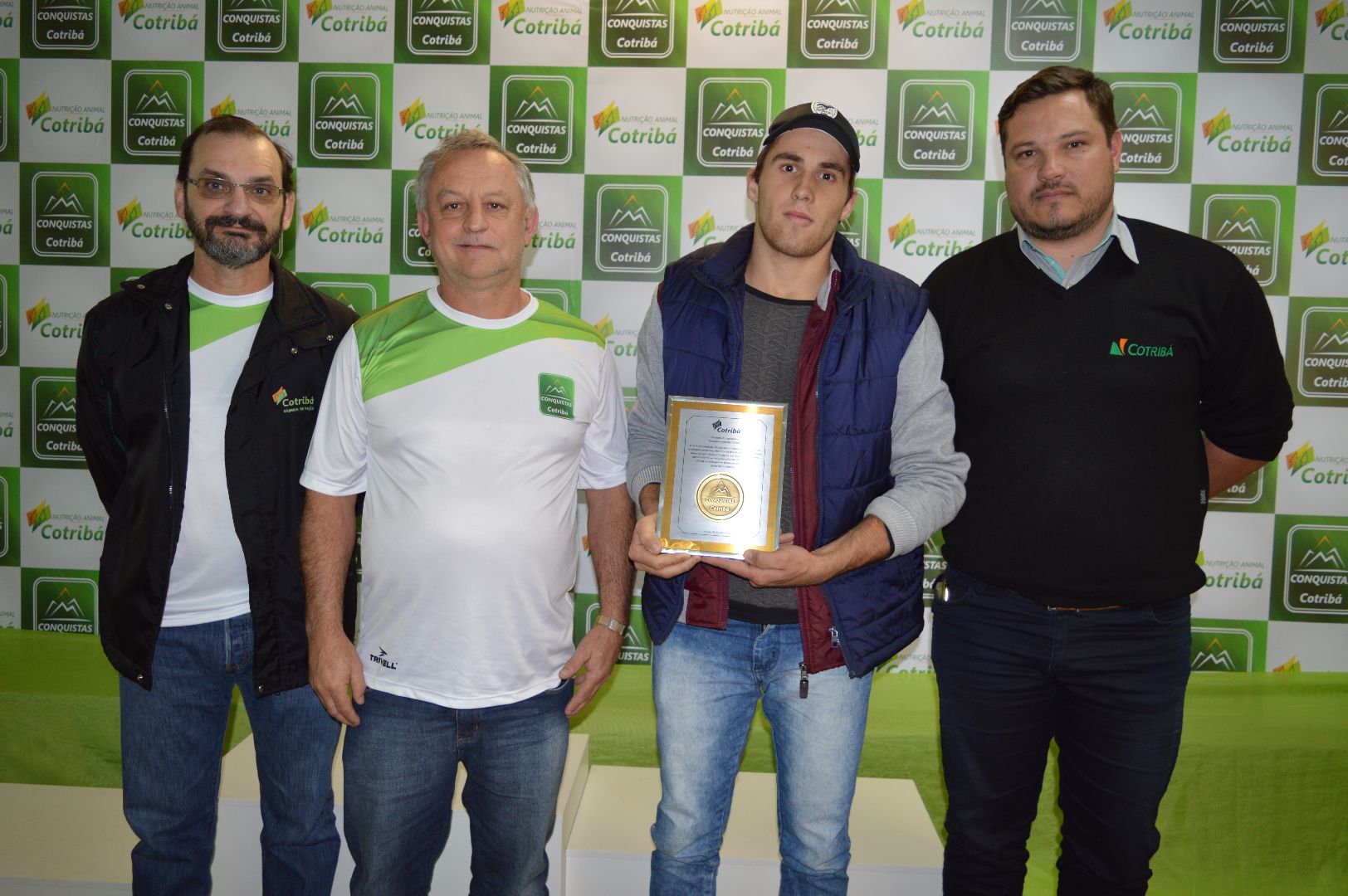 A Cotribá realizou nesta terça-feira, 04, na Asfuca, a premiação dos colaboradores e parceiros que participam do Programa Conquistas Cotribá, referente aos números do primeiro semestre do ano. As três melhores performance das cinco categorias (exceto nas categorias Coordenador e A.T.C em que somente o primeiro lugar é premiado) foram homenageados com placas de reconhecimento. Sendo que os primeiros colocados também ganharam uma jaqueta de couro personalizada.