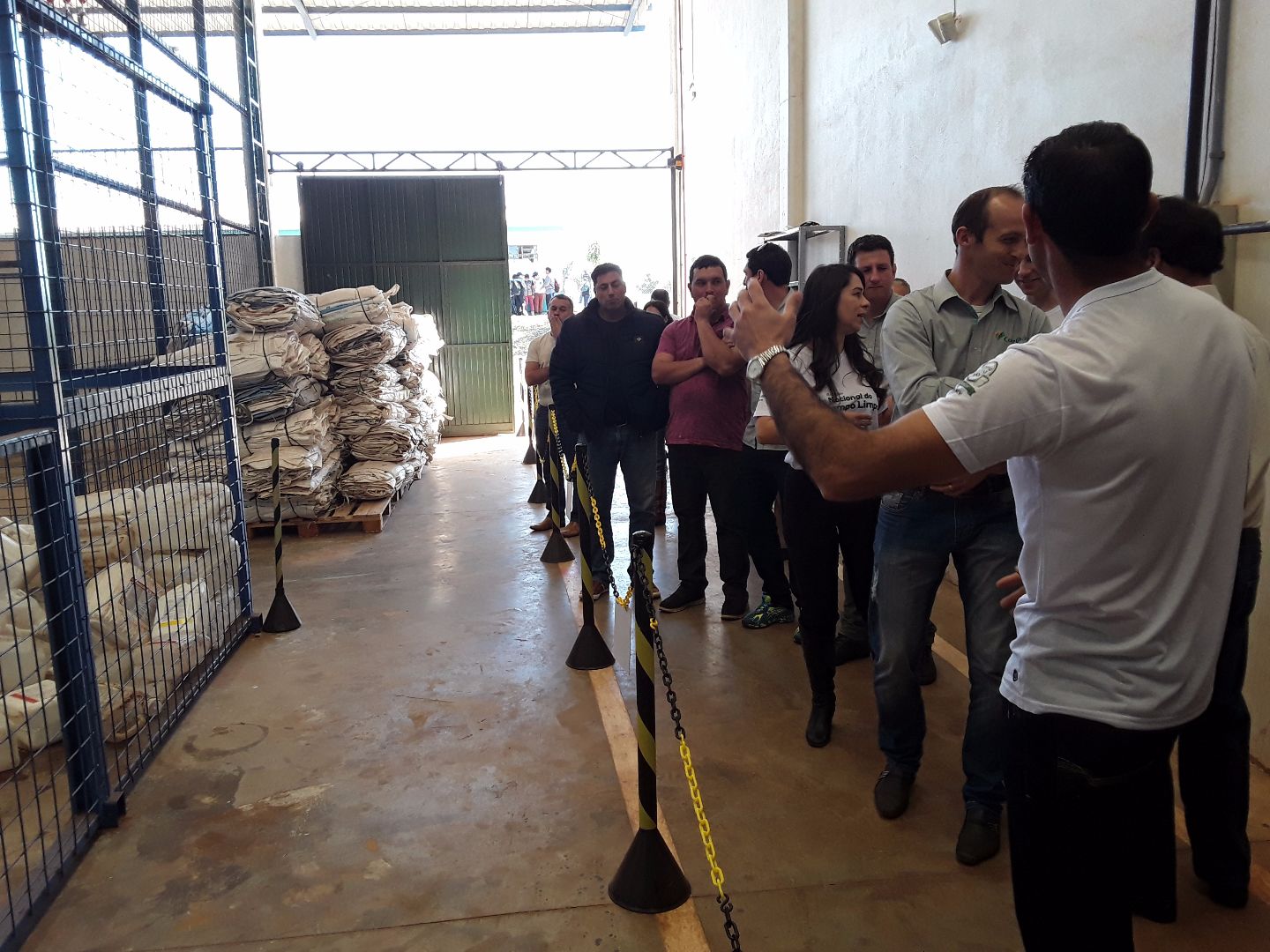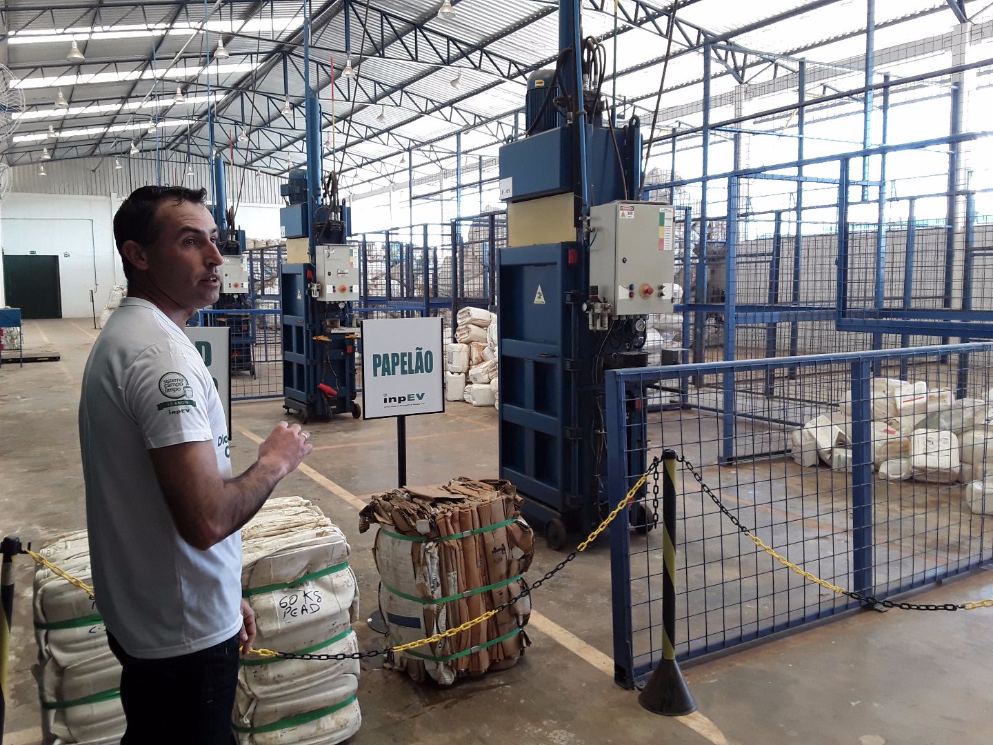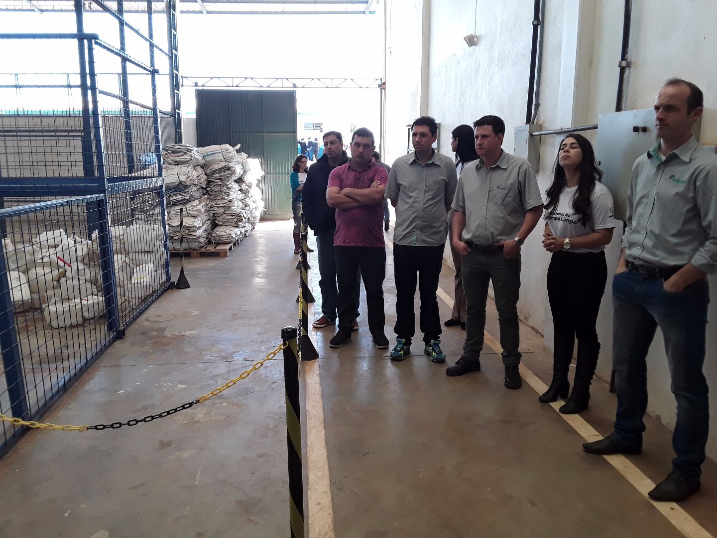 Pela manhã o encontro foi na unidade do inpEV, onde os visitantes puderam conhecer e observar como as embalagens de defensivos são recebidas, embaladas e encaminhadas para reciclagem.
