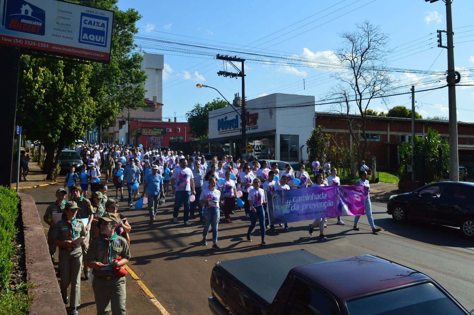 #MaisPrevençãoMenosCâncer, a campanha realizada pelo segundo ano consecutivo na cooperativa, ganhou tom de grito de guerra e tomou as principais ruas de Ibirubá na quinta-feira, 30 de novembro. A caminhada da prevenção partiu do trevo principal da cidade e percorreu as ruas Mauá, Sete de Setembro e do Comércio até a Casa de Cultura Osvaldo Krammes. A iniciativa da Cotribá contou com a participação de instituições como a Liga Feminina de Combate ao Câncer, Grupo de Escoteiros e Datamed.