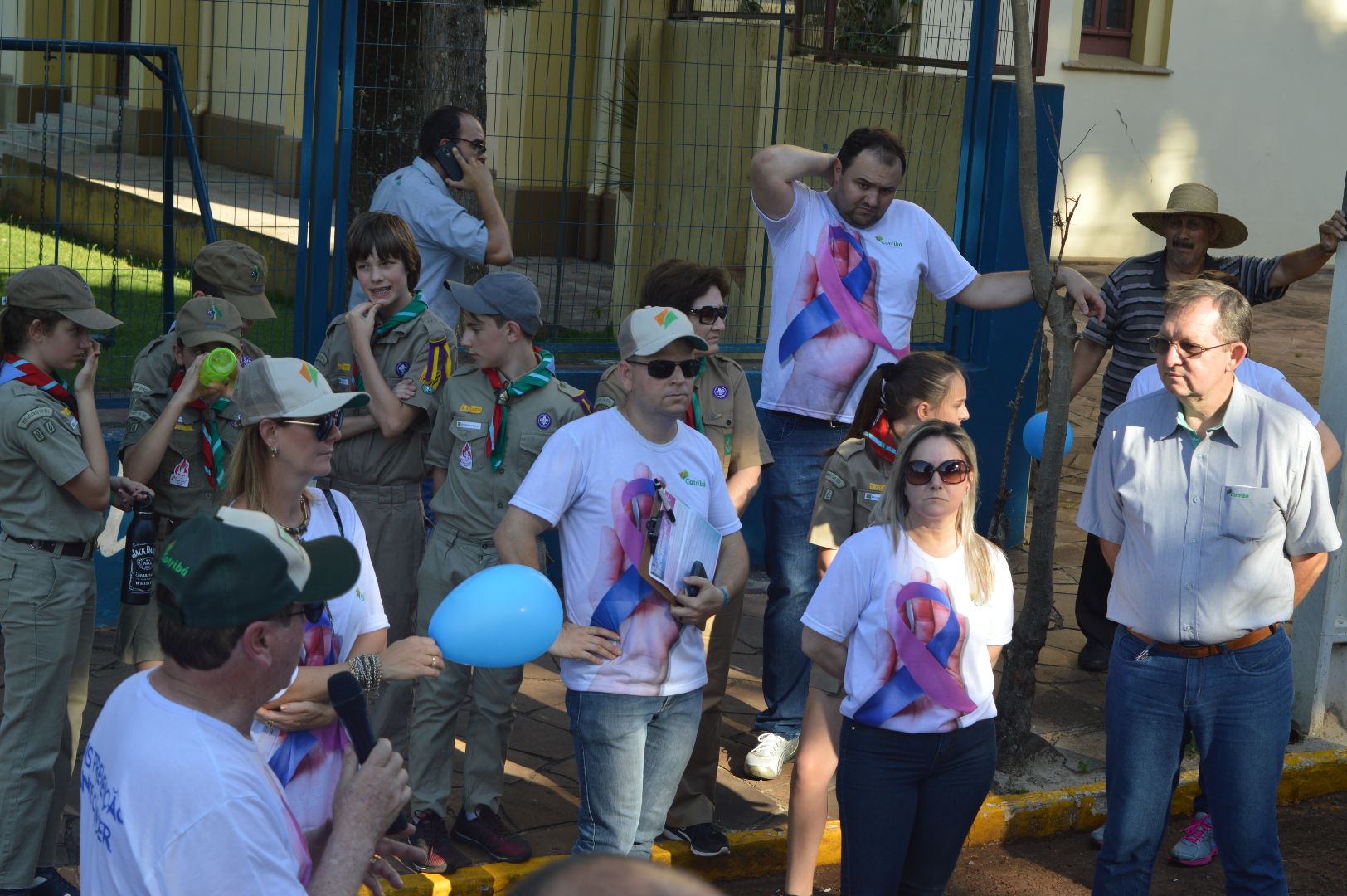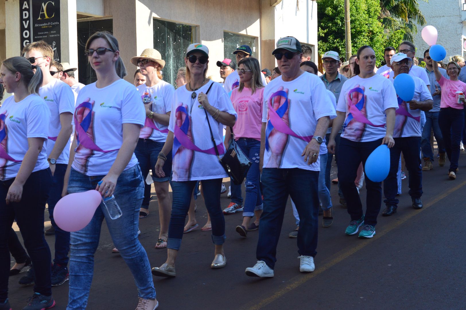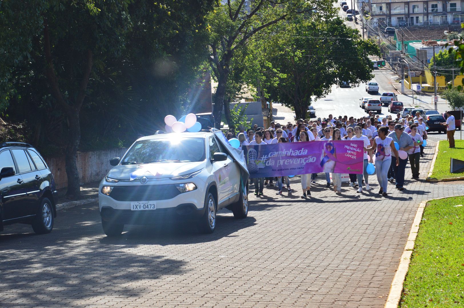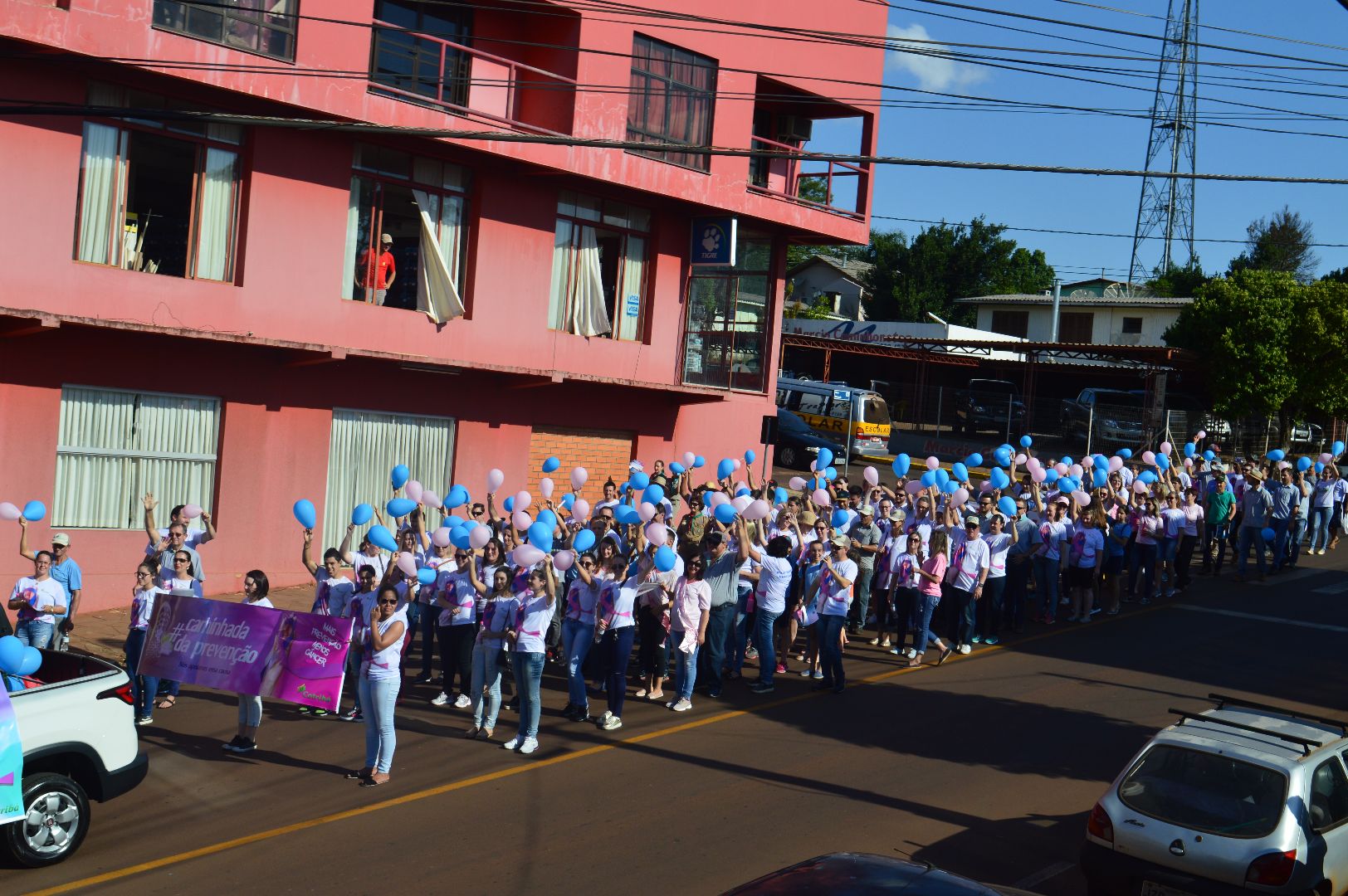Durante o percurso, os participantes distribuíram panfletos com informações e dicas de prevenção contra o câncer. As informações também foram deflagradas através de um carro de som. Banners, faixas e balões azul e rosa também foram estratégias utilizadas para lembrar os objetivos do Outubro Rosa e Novembro Azul.