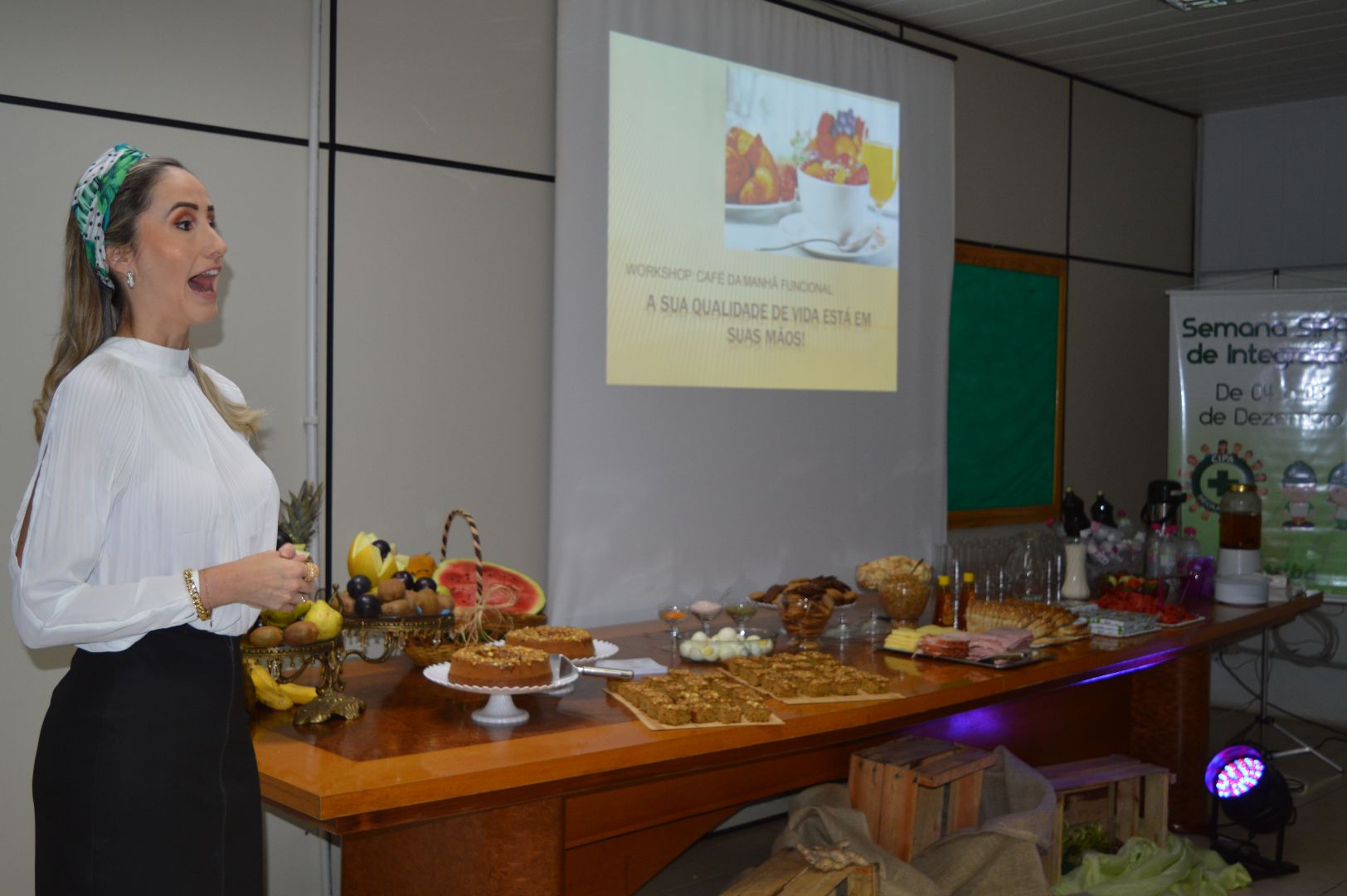 Na segunda-feira, 04, um Workshop sobre alimentação funcional, com a nutricionista Manuela Meinen, marcou a abertura dos trabalhos. Na ocasião, a profissional fez uma relação entre a qualidade de vida proposta pela SIPAT e a alimentação como fator preponderante para a saúde e o bem estar das pessoas.