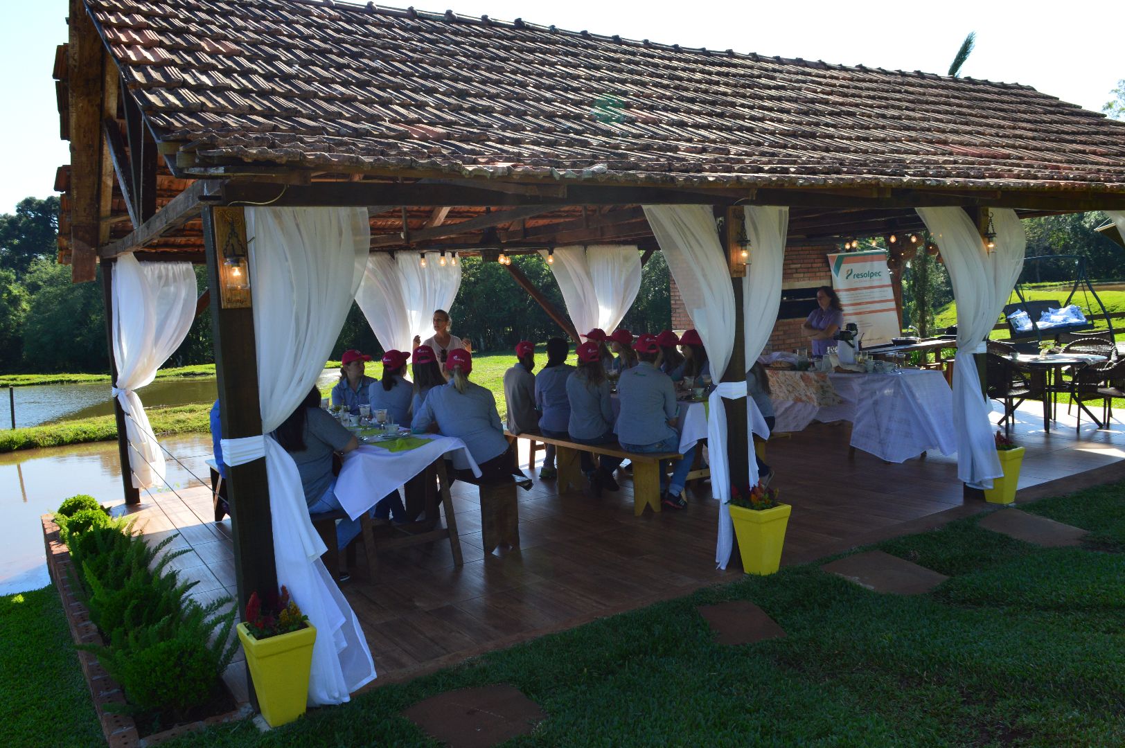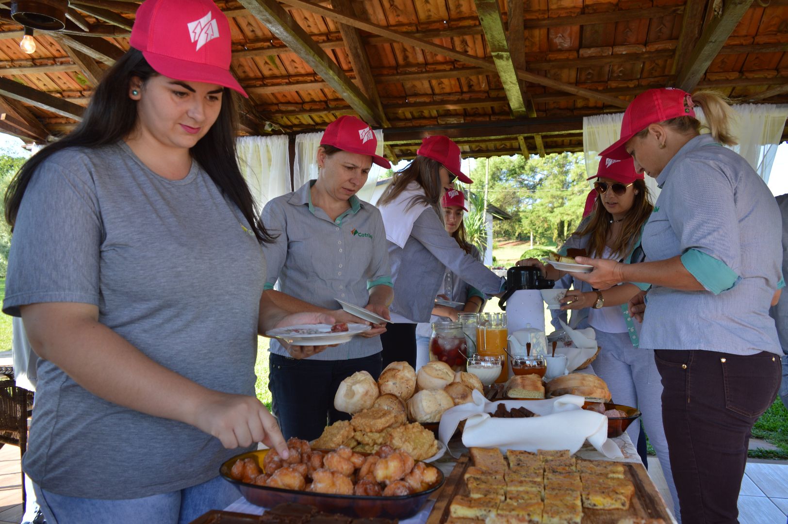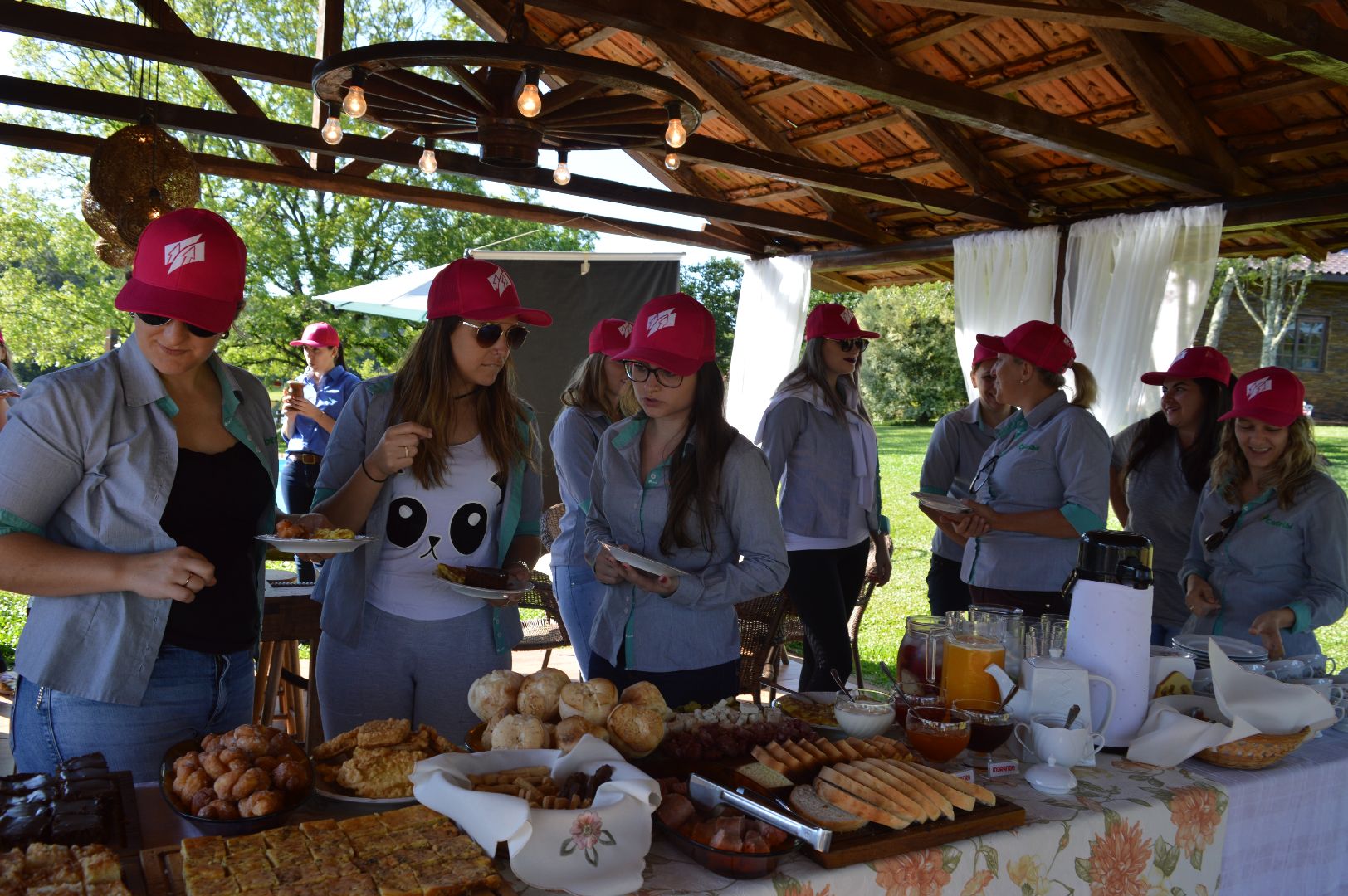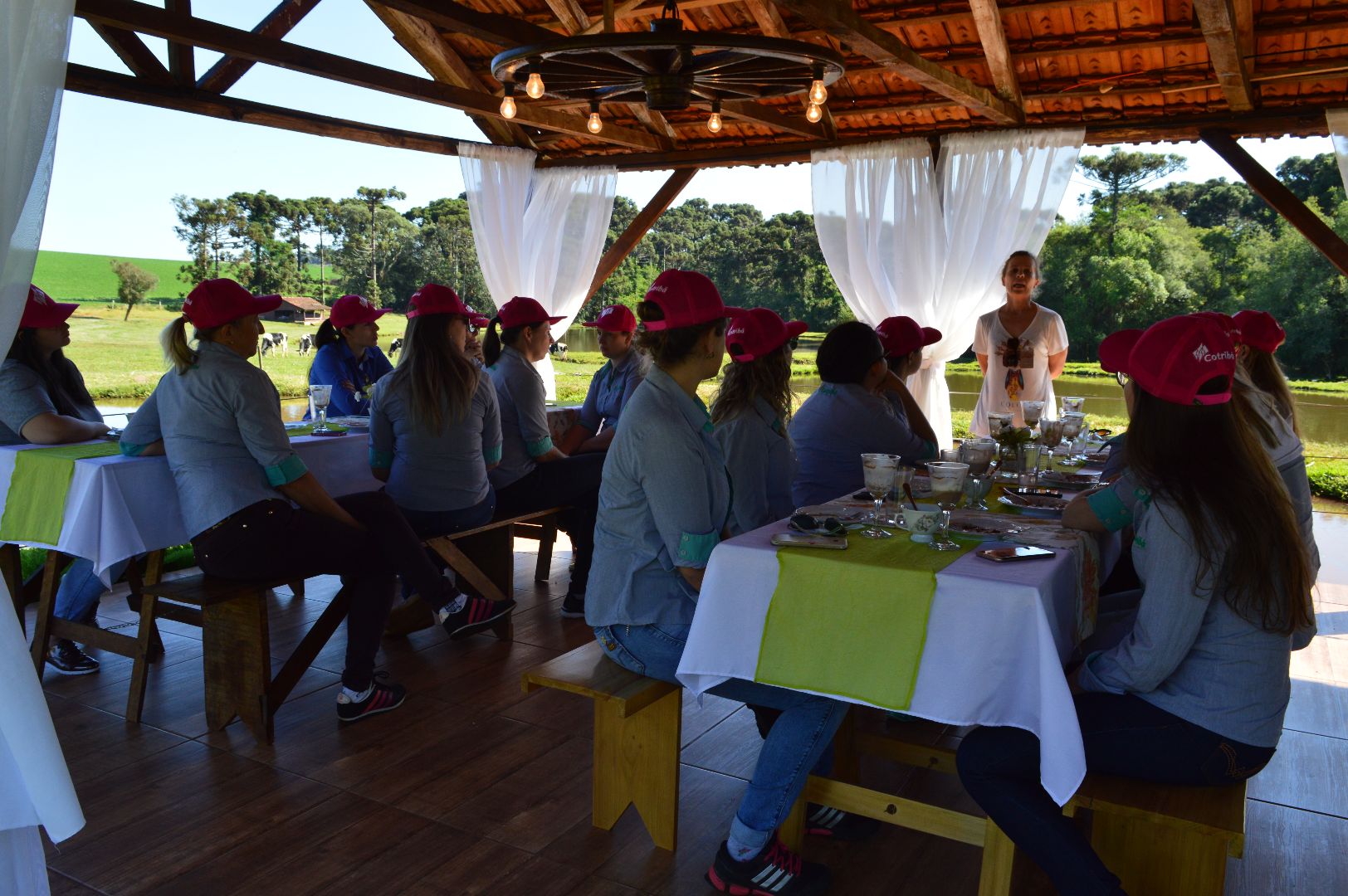 A manhã foi repleta de surpresas. Logo cedo o grupo foi recebido por uma das proprietárias do local, Júlia Lagemann, que explanou brevemente sobre a história da Agropecuária Canaju que, além das atividades agropecuárias, também investe e aposta no turismo rural. Depois, as participantes degustaram um típico e delicioso café colonial em um ambiente inspirador. A anfitriã também passou uma mensagem de otimismo e trabalho em equipe.