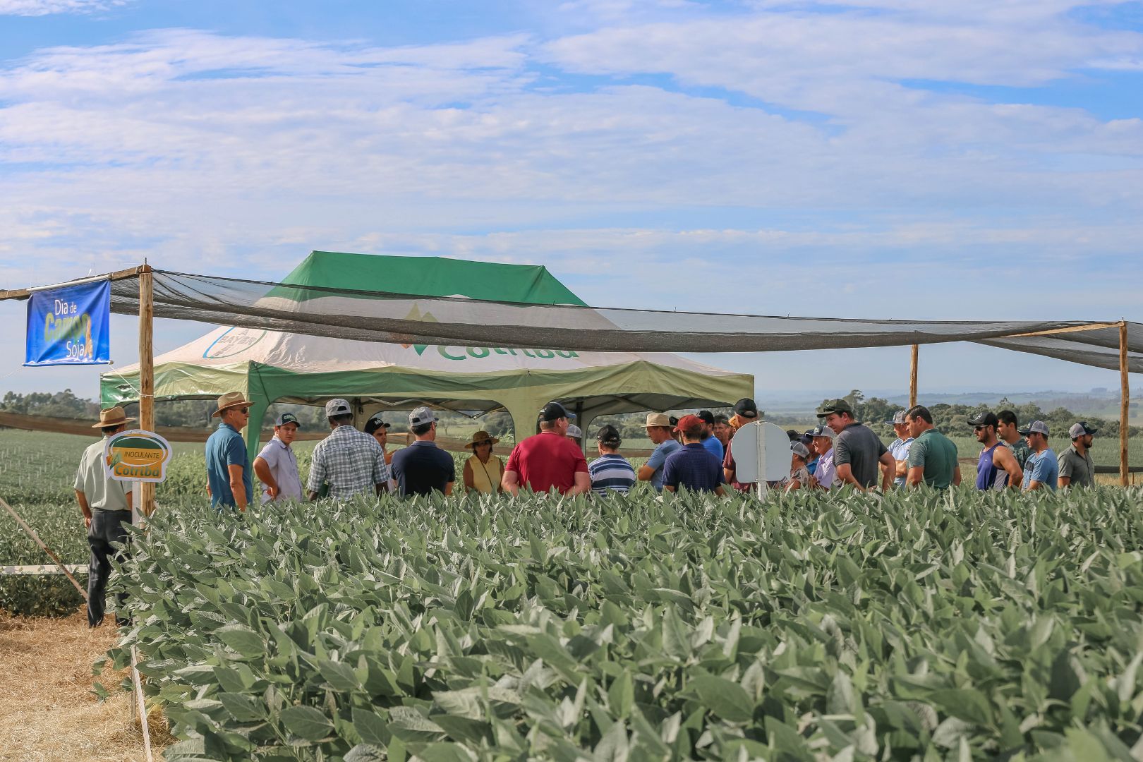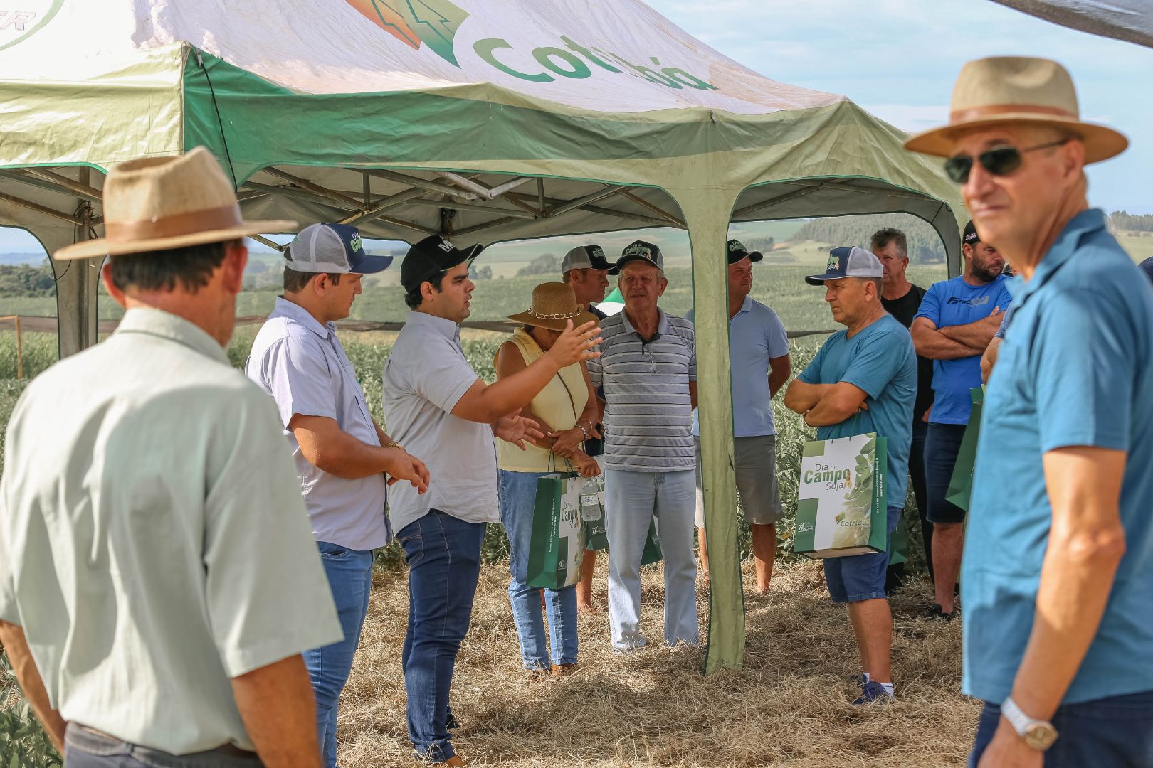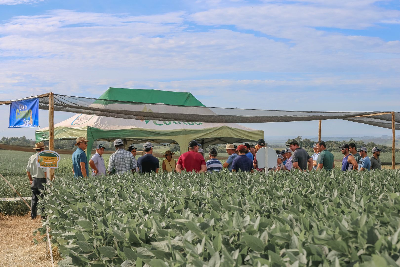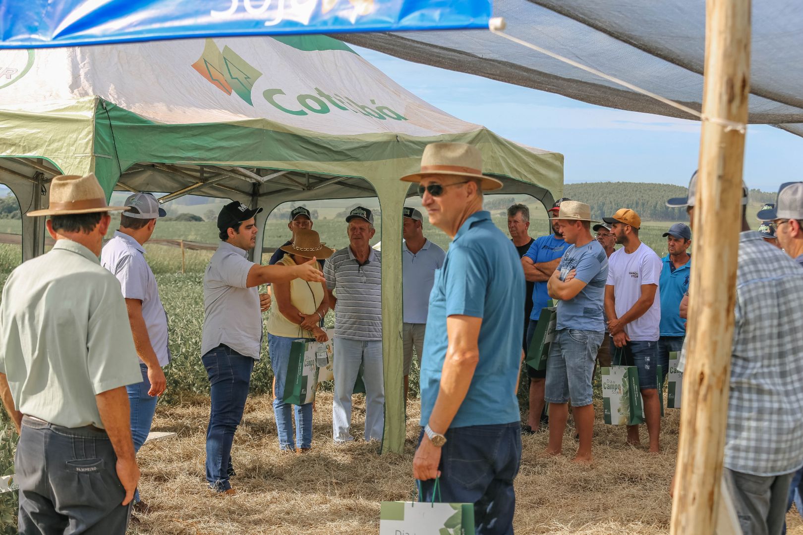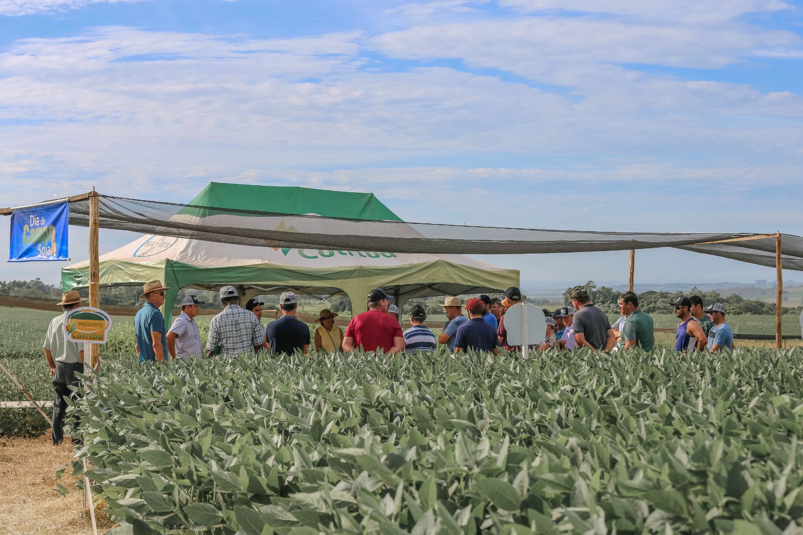 A Cotribá realizou nesta terça-feira, 17, dia de campo sobre a cultura da soja, em Rio Pardo localidade de Cruz Alta. Participaram mais de 350 produtores da área de ação da cooperativa do Vale do Rio Pardo. Municípios representados no evento foram: Rio Pardo; Encruzilhada do Sul, Butiá; Minas do Leão; Candelária e Santa Cruz. Os visitantes puderam observar o campo experimental desenvolvido pela Cotribá e obter informações técnicas, conhecer o desenvolvimento de diversas cultivares e novas tecnologias.