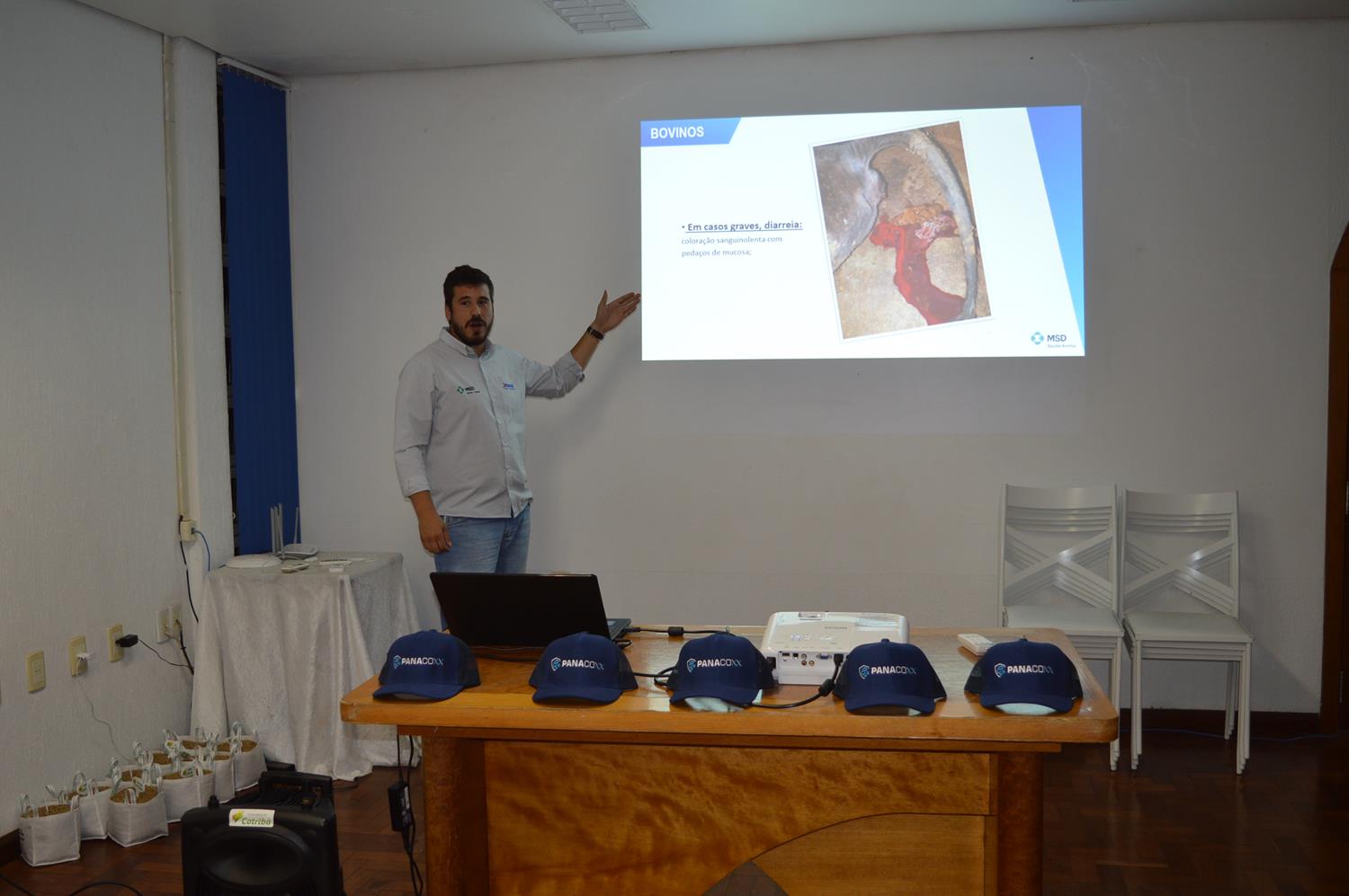 Com o objetivo de transmitir informação e conhecimento para a equipe técnica da Cotribá sobre novas opções para os produtores, a distribuidora de produtos veterinários Intersul, que representa a marca MSD Saúde Animal, promoveu o lançamento de um novo produto veterinário, o Panacoxx. A apresentação foi realizada na noite de terça-feira (30), junto à Asfuca para os colaboradores da área de produção animal.