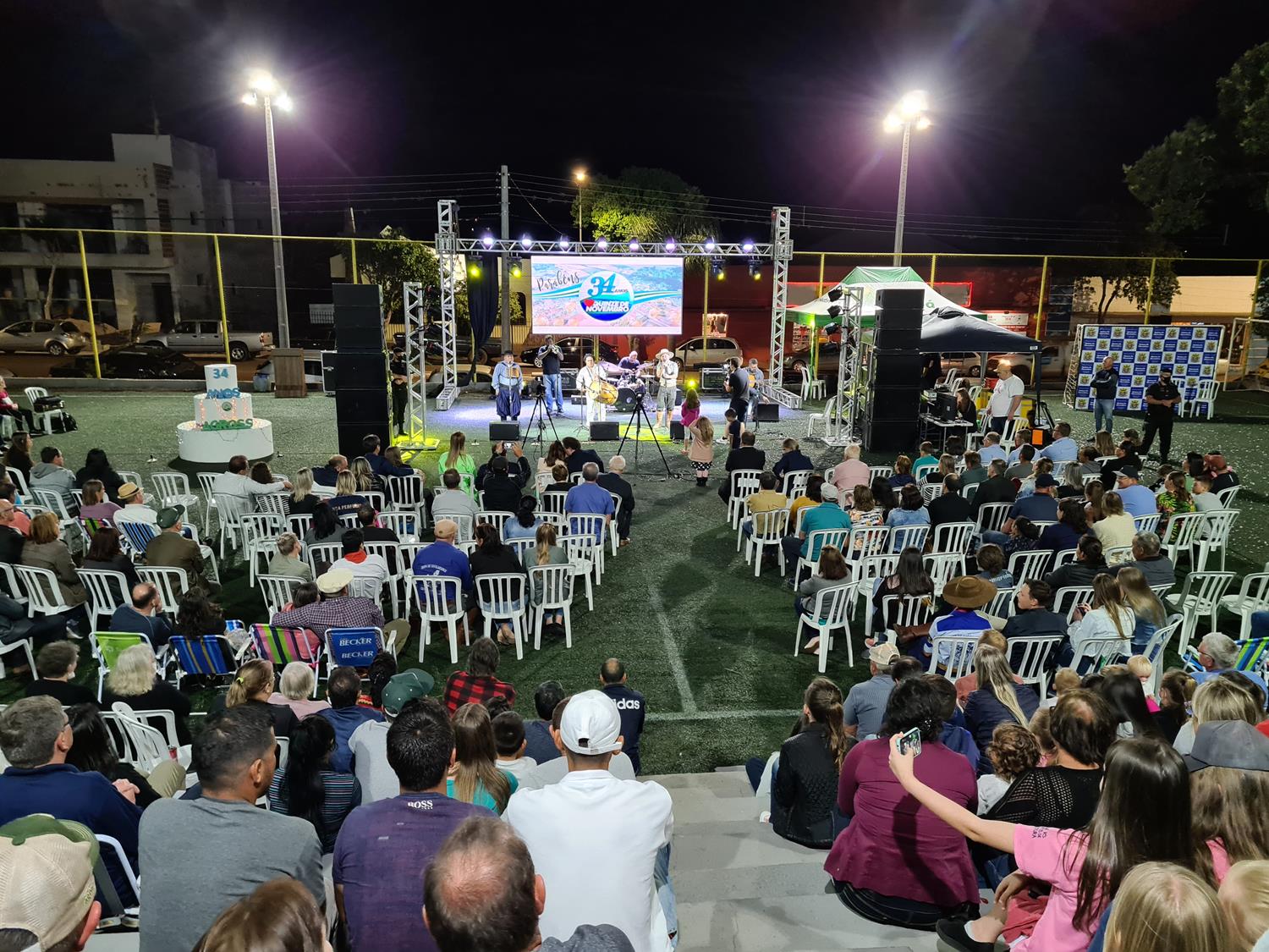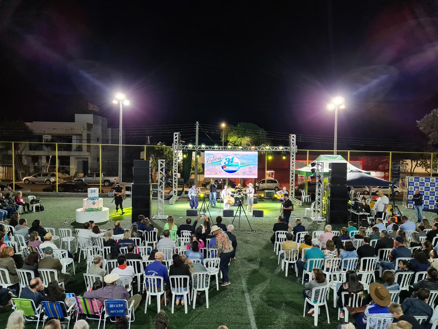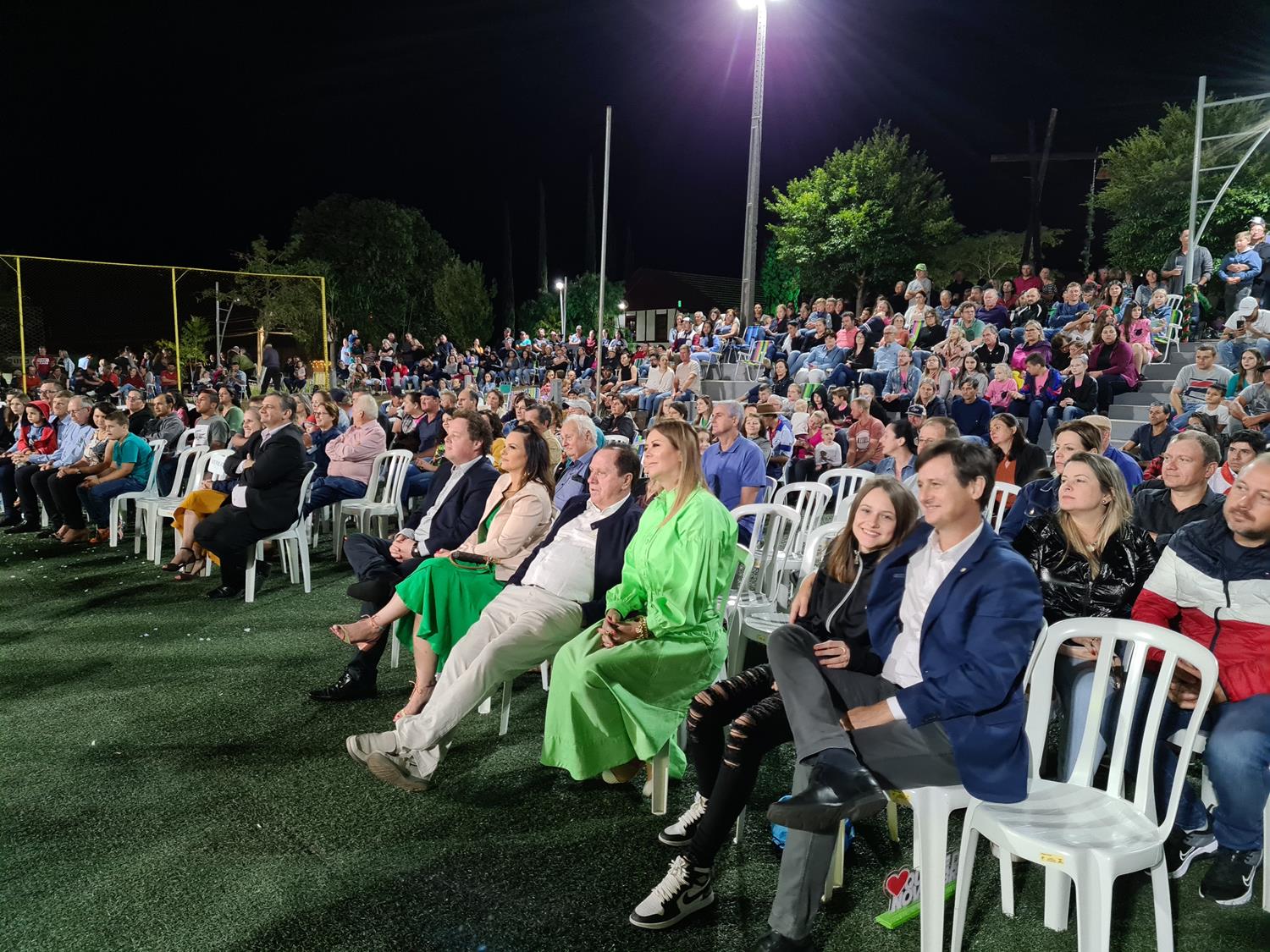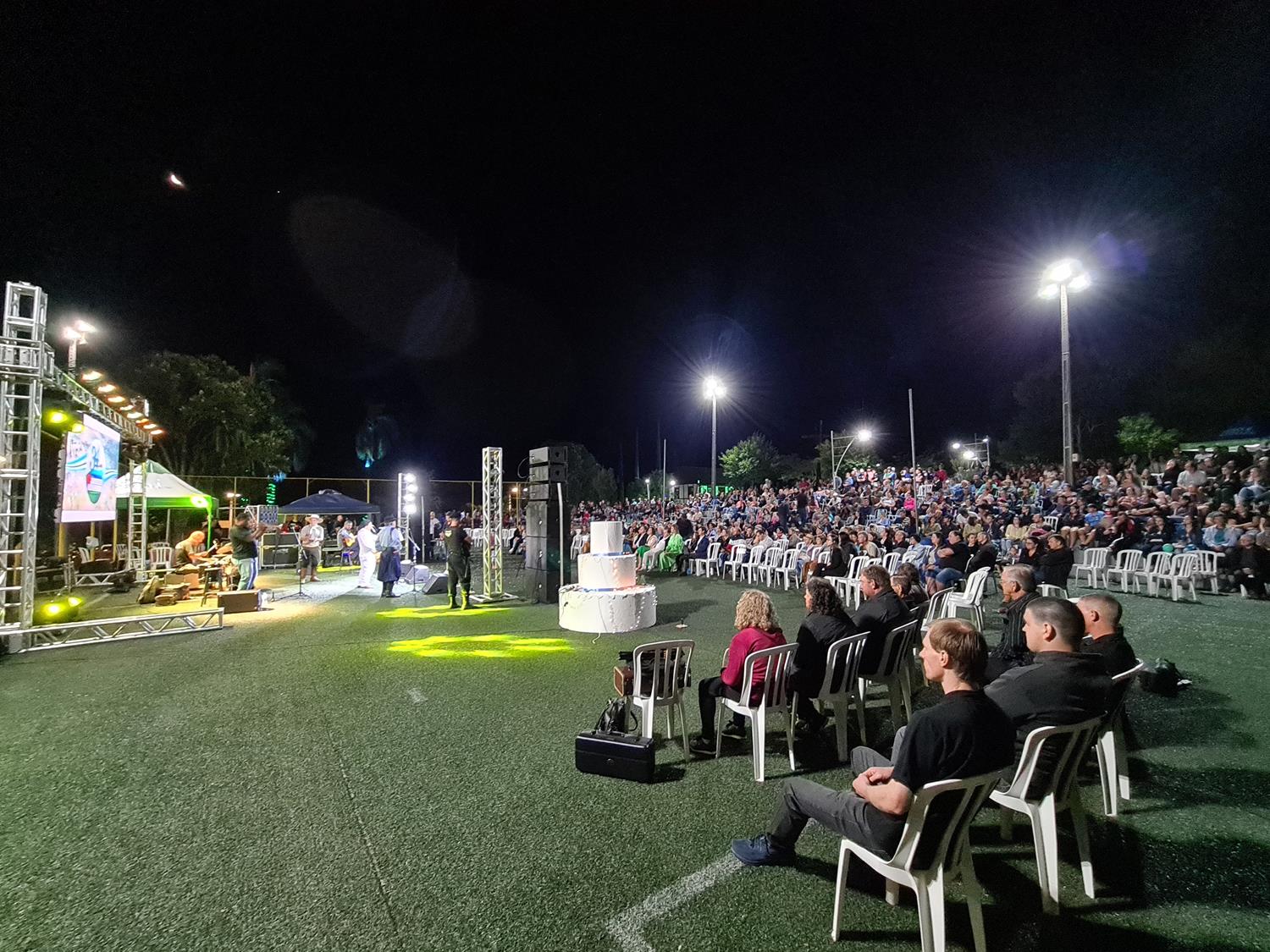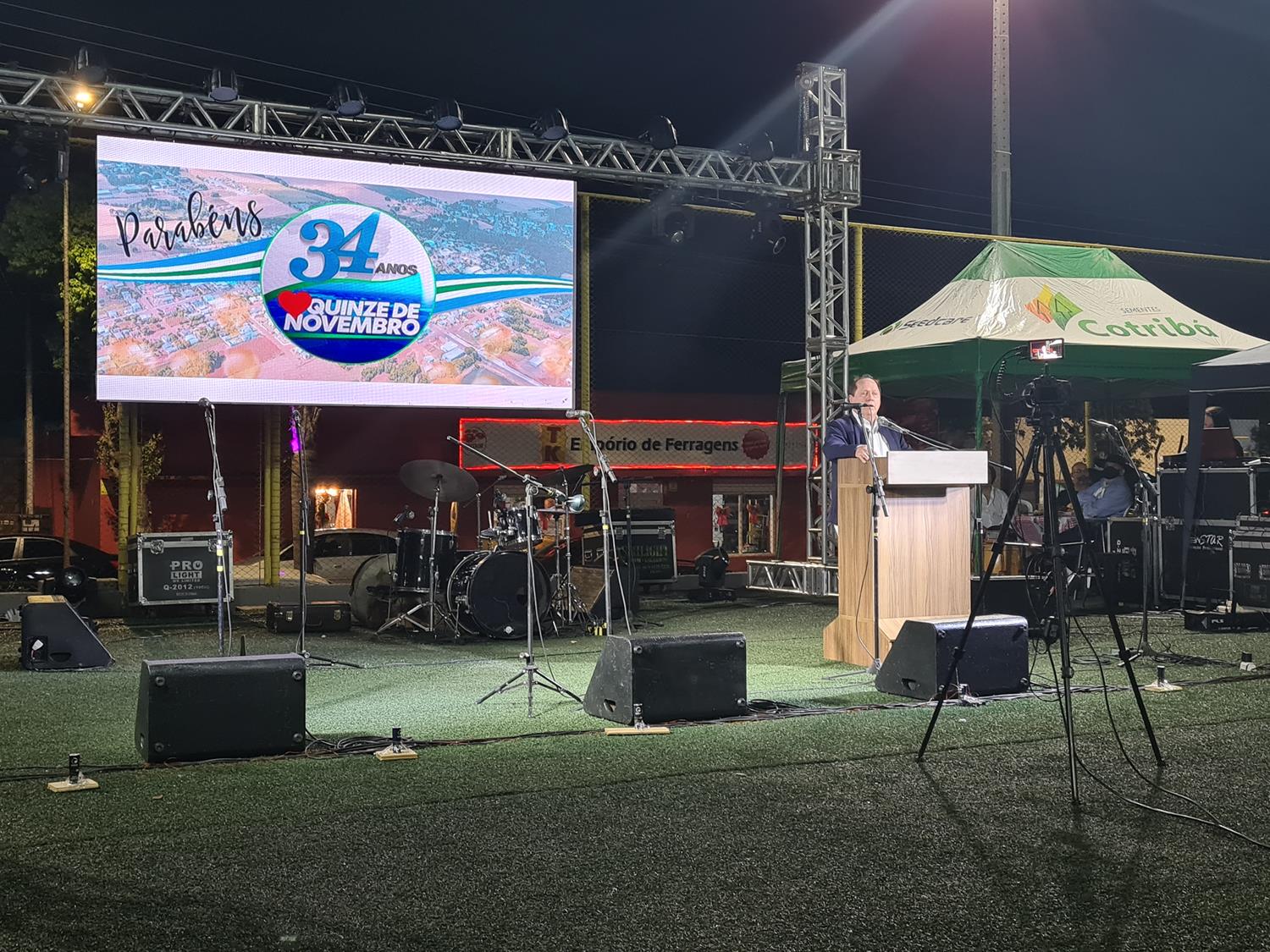 Associados, clientes e a população em geral lotou a praça Clara Saft na noite desta quarta-feira (08) para acompanhar o presente da cooperativa para Quinze de Novembro, que desde antes de sua emancipação conta com a presença da Cotribá. “O município está completando 34 anos, e a Cotribá já tem sede aqui há mais de 40 anos. Desenvolvemos muitos projetos com o apoio dos associados da ‘Quinze’, temos uma presença sólida no município, que podemos dizer que faz parte da sede da cooperativa. Por isso valorizamos com esta parceria com este show cultural”, destacou o presidente da Cotribá, Celso Leomar Krug, em seu pronunciamento no evento.
