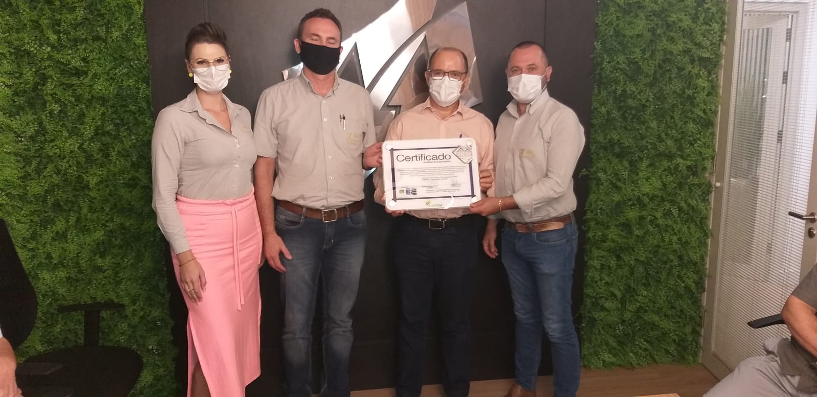 Na manhã desta quinta-feira (24/02), o vice-presidente da Cotribá Enio Nascimento e equipe técnica da cooperativa receberam o presidente da Emater Edmilson Pelizari, o diretor técnico Alencar Rugeri e o supervisor Jair Domenighi para a entrega de 5 certificados, sendo 3 renovações (unidades de Cruz Alta, Quinze de Novembro e Boqueirão/ Ibirubá) e 2 processos novos (unidade de Boa Vista do Incra e Fazenda Colorado/Fortaleza dos Valos). A certificação é válida até o ano de 2026.