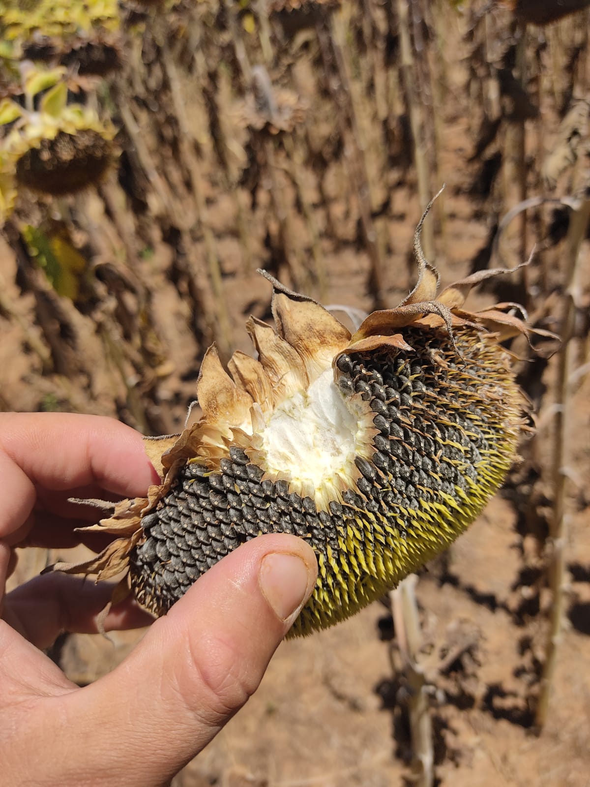 O maior desafio foi o de implantação da cultura. Por ter uma semente mais leve, o girassol exige que a semeadora esteja muito bem regulada. Em função da estiagem, o estabelecimento da cultura teve atraso, mas ainda assim foi possível obter um bom estande final de plantas. A cultura também não apresentou pragas e doenças.