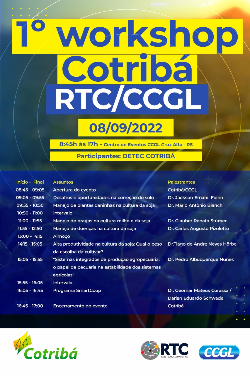“Sempre é bom e necessário reunir nosso time para um momento de qualificação. Levamos ao evento o departamento técnico da Cotribá, reunindo pessoas da região Norte e Sul do estado, para uma verdadeira bateria de novas informações técnicas e treinamento”, destacou o engenheiro agrônomo e coordenador técnico, Fernando Müller.