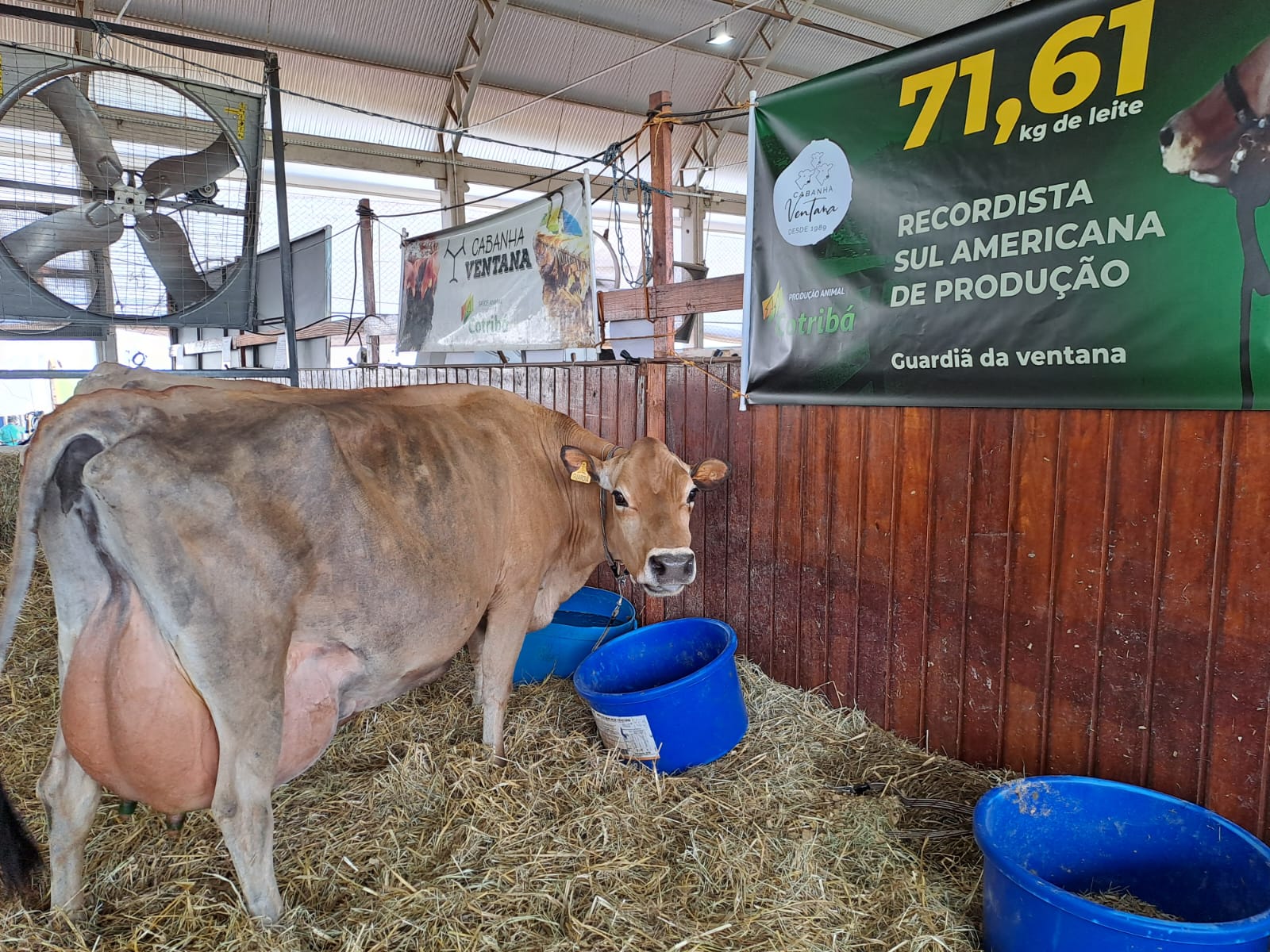 A ExpoAgro Cotricampo 2025, realizada em Campo Novo (RS), foi palco de um feito histórico para a pecuária leiteira sul-americana. A vaca Guardiã D’Artagnan, da Cabanha Ventana, que pertence à produtora e associada da Cotribá, Carmem Petersen Dias da Costa, bateu o recorde de produção de leite em 24 horas no torneio leiteiro da Raça Jersey.