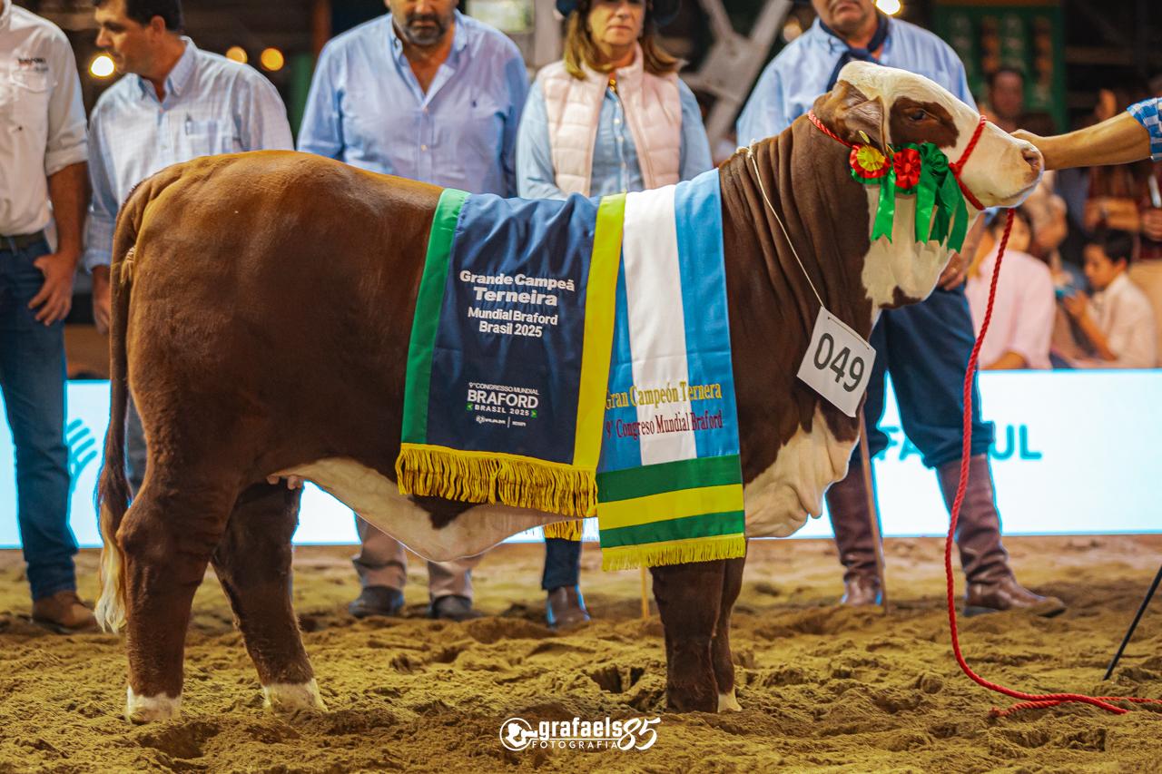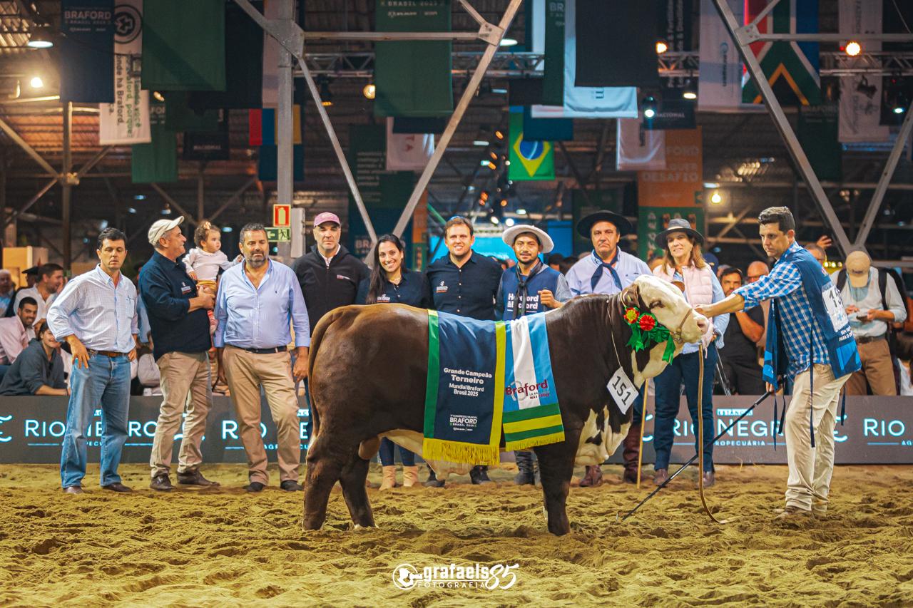 O julgamento de terneiros e terneiras da raça Braford, realizado na sexta-feira (2) no Parque de Exposições Assis Brasil, em Esteio (RS), marcou uma das principais atividades do 9º Congresso Mundial Braford. Dois associados da Cotribá, Marcos Fernando Antoniazzi, da Fazenda Pitanga, e Raul Gonçalves Southall, da Fazenda Vacacaí, ambos de São Gabriel (RS), conquistaram os principais títulos da competição na modalidade argola, nas categorias Terneiro Maior e Terneira Maior (nascidos entre maio e junho de 2024).