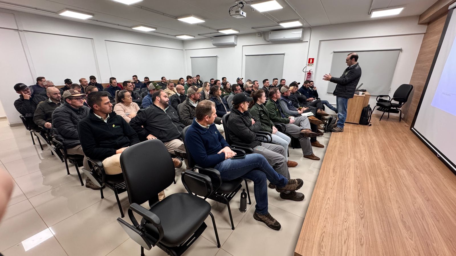 Durante a visita, estiveram presentes representantes da Salus Group, o Gerente Comercial da Cotribá, Marcelo Debortoli, o Coordenador Industrial, Rafael Shuster, além da equipe de representantes comerciais e técnicos da cooperativa. O encontro proporcionou troca de experiências, alinhamento de estratégias e aprofundamento do conhecimento sobre as tecnologias que serão incorporadas às rações Cotribá.